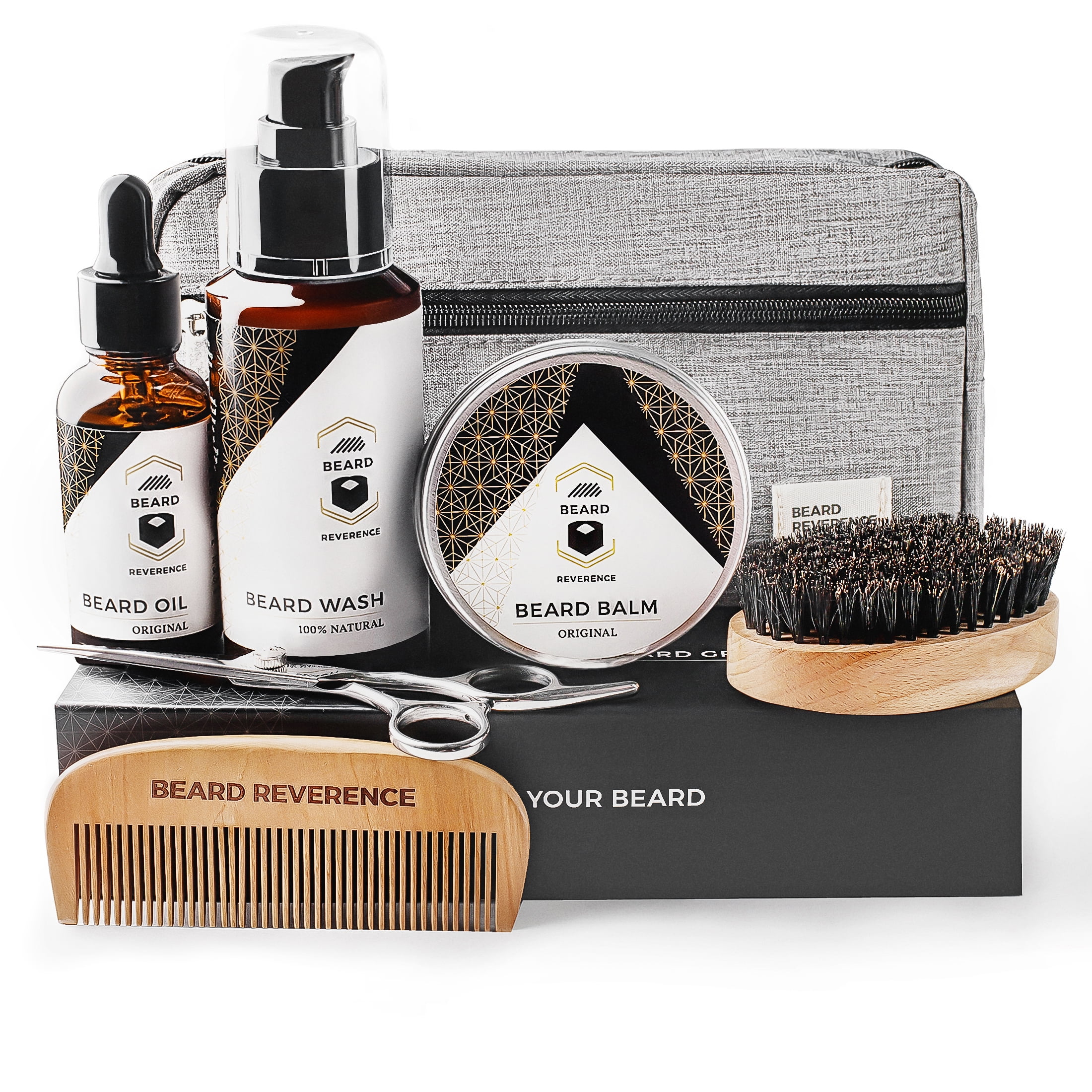 Beard Reverence Premium Beard Kit – All Natural 8 in 1 Grooming Set With Travel Bag and Gift Box