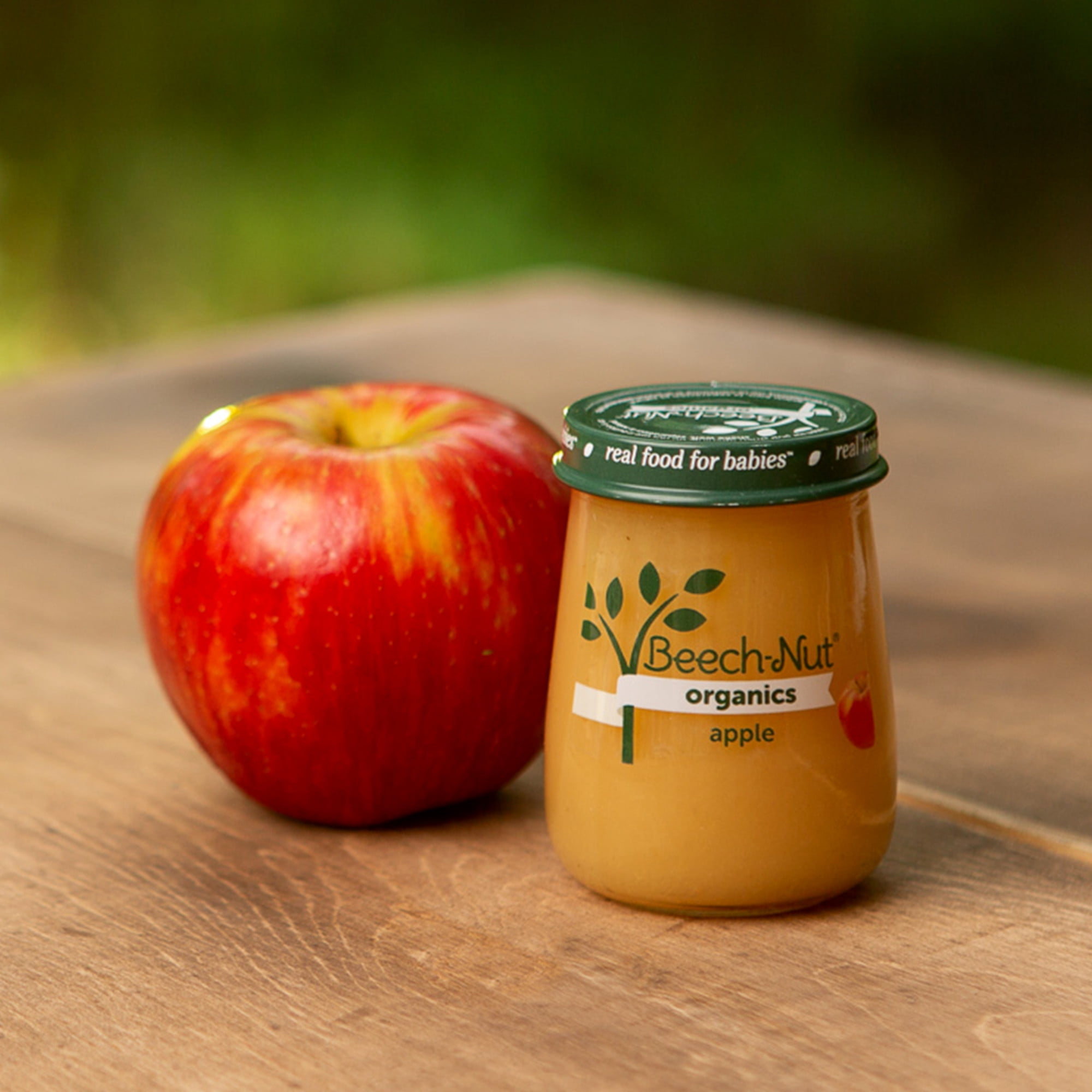 Beech-Nut organic baby food jars are the #1 organic baby food jar option chosen by parents in the U.S.! (IRI, 52wks through 05/15/22). We pride ourselves on the high quality of our products and are delighted that parents feel the same! All of Beech-Nut’s organic baby food jars are made with USDA Certified Organic & Non-GMO ingredients – no added sweeteners, flavors, colors, or artificial preservatives. Just real ingredients, gently cooked, to preserve color, flavor, and nutrients.This Stage 1 organic apple baby food puree is ideal for babies 4 months and up. We puree organic apples until smooth to create this simple and delicious baby food. If your baby loves this flavor, try our new Organic Apple Blueberry Rolled Oats baby food jar for an advanced texture.Introduce your baby to a variety of fruits, vegetables, and whole grains with our line of baby food purees, from simple, single-ingredient varieties to more advanced flavor combinations and textures! All Beech-Nut baby food jars are vacuum-sealed for freshness. This jar can be stored in the refrigerator for up to 3 days after opening.