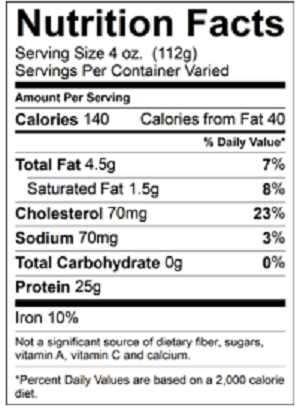 - Excellent source of protein, vitamin B6, vitamin B12, zinc, niacin, selenium and a good source of phosphorous, riboflavin and iron