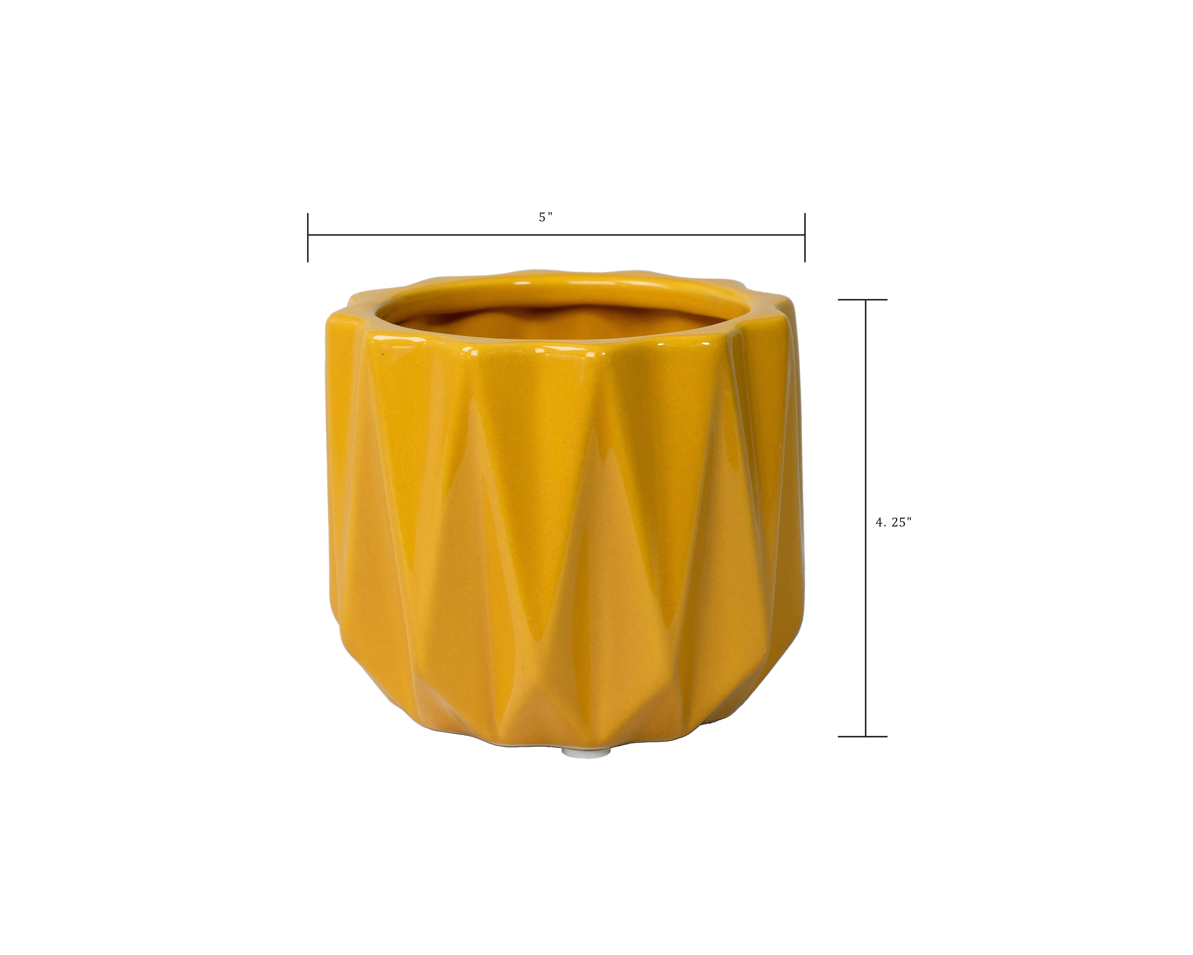 Better Homes & Gardens Devi 5in round planter gives any small-size plant the showcase it deserves. The modern-shaped planter is made of shiny yellow glaze. which have an artistic, one-of-a-kind feel. Perfect for indoor or outdoor use, the pot includes a convenient plug so you can nurture plants without water seeping out and ruining surfaces. Better Homes & Gardens Devi 5in round planter is a natural addition to your modern indoor or outdoor seating, dining, or living rooms.