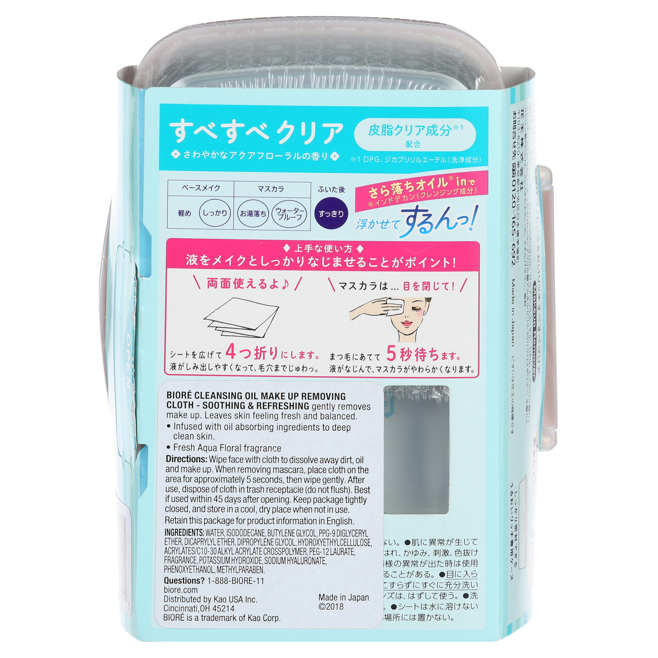Bioré Cleansing Oil Make Up Removing Cloths – Soothing & Refreshing, these ”miracle cloths” made with 100% cotton are more like a cushion than a sheet remove even the most stubborn makeup while refreshing your skin. Formulated with a lightweight Smooth Cleansing Oil to gently remove make up without tough rubbing on delicate eye area, and infused with Sebum Cleansing ingredients to deep clean and remove oil so you’ll feel fresh and dewy, with a fresh aqua floral fragrance. Soaked with 20% more cleansing oil, dissolves even stubborn waterproof mascara with ease, reducing any pulling or tugging at your skin. Plus, they are alcohol-free and enriched with a hydrating beauty essence to leave skin hydrated and smooth, not feeling oily or sticky.Biore Cleansing Oil Cotton Facial Cloths Soothing