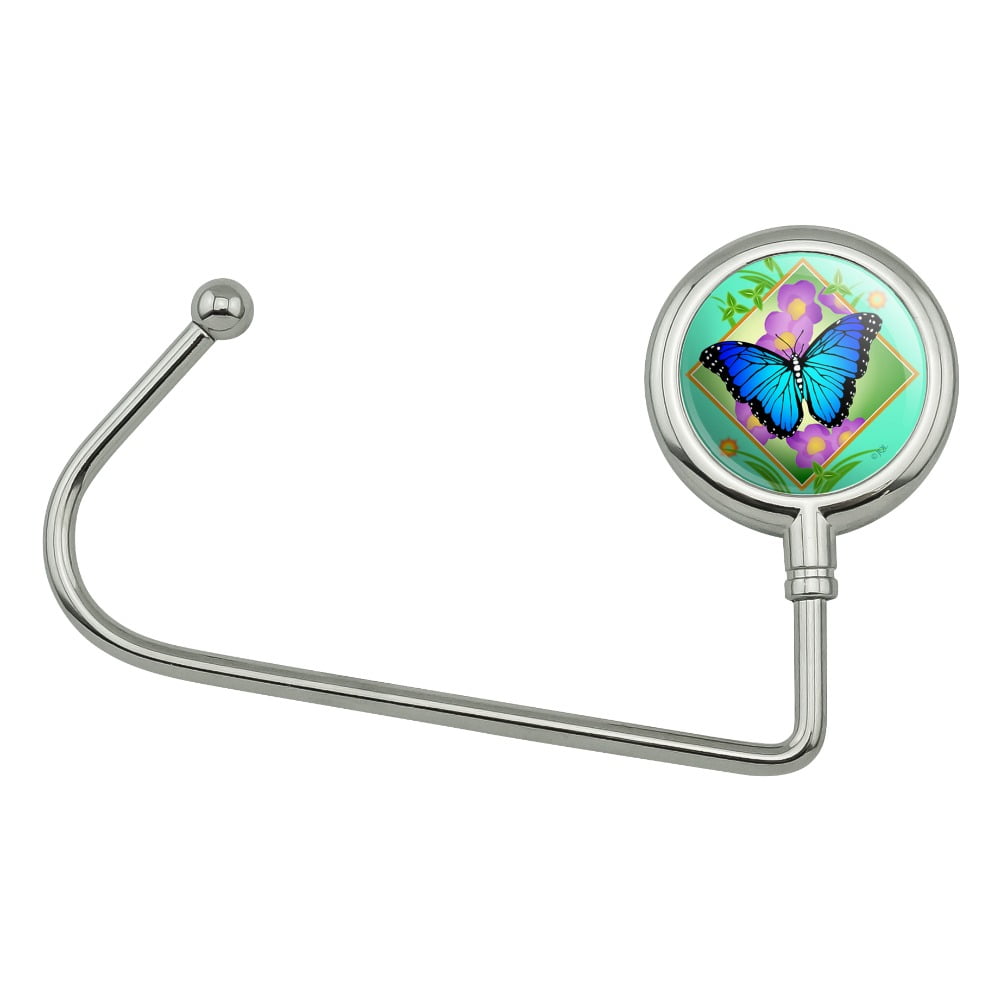 Blue Butterfly Purple Flowers Purse Bag Hanger Holder Hook