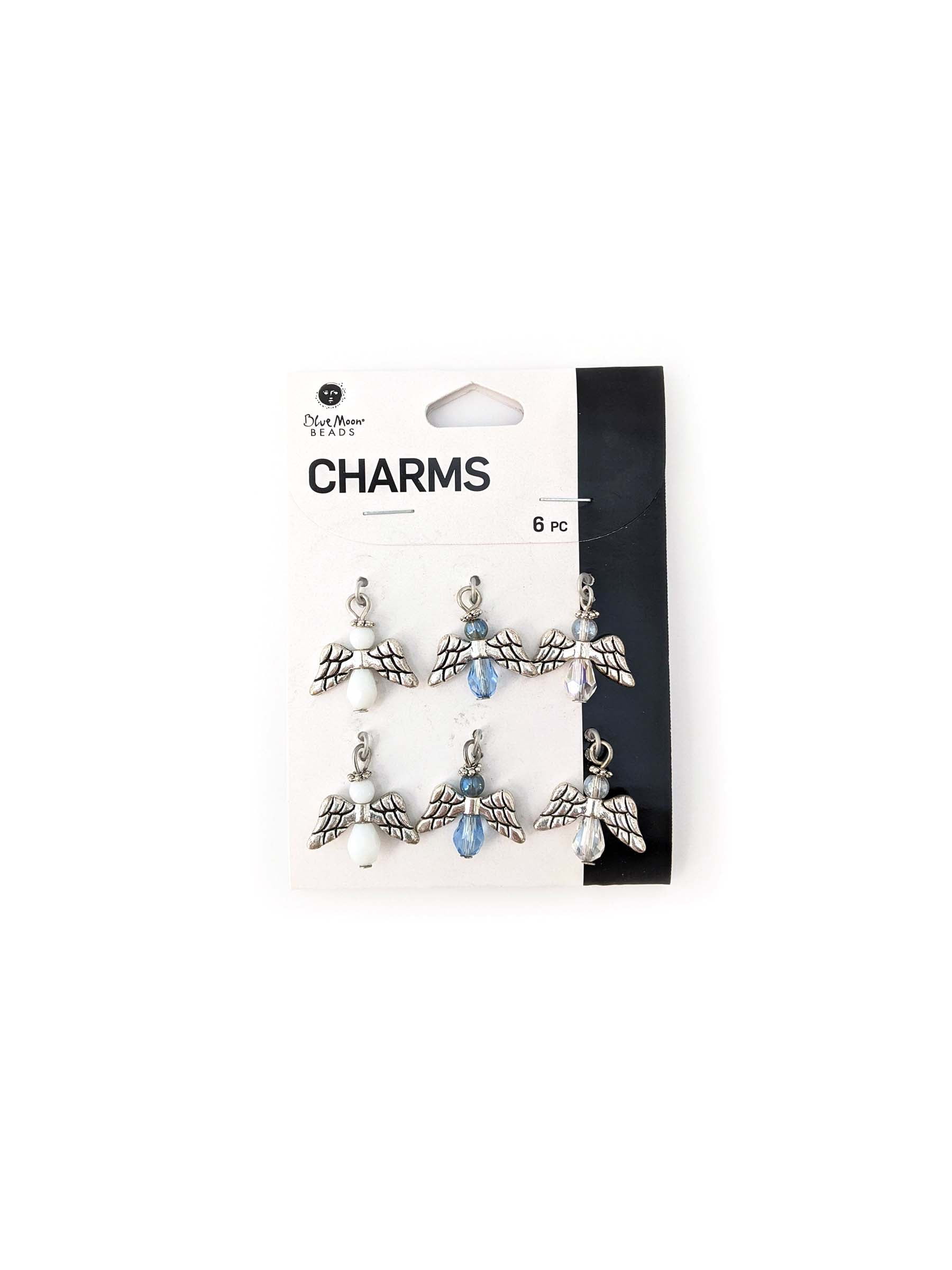 Blue Moon Beads Silver Metal Angels Charms for Jewelry Making, 6 Piece