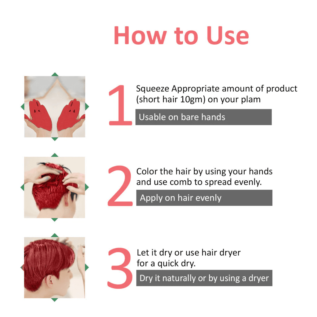 Butipure Semi Permanent Vivid Red Hair color hassle free coloring in instant way. A temporary hair color is plug and play concept. Butipure is K-Beauty Brand loved by kids to adults in all ages. This hair color is out after 1 wash and kind for your hair. Just rub, dry, wash and repeat. Each shade is vivid color tone on all hair types, no bleach on hair anymore. Break the daily cycle and start exploring your new style with Butipure hair colors.