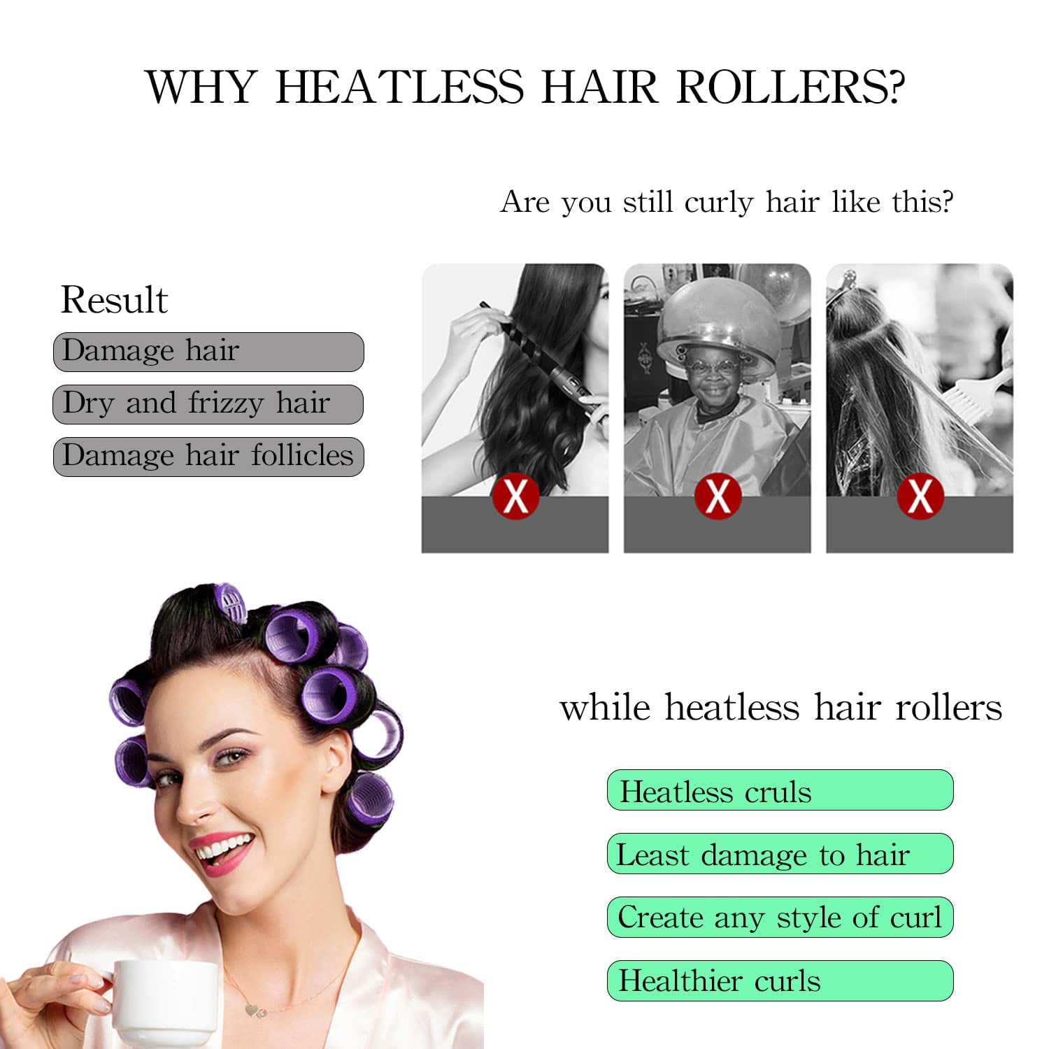 - Full bodied and soft curls that will bring a beautiful lift to your hair for a polished look with no heat! Hair curlers for all hair types: fine, thin, thick, short & long.