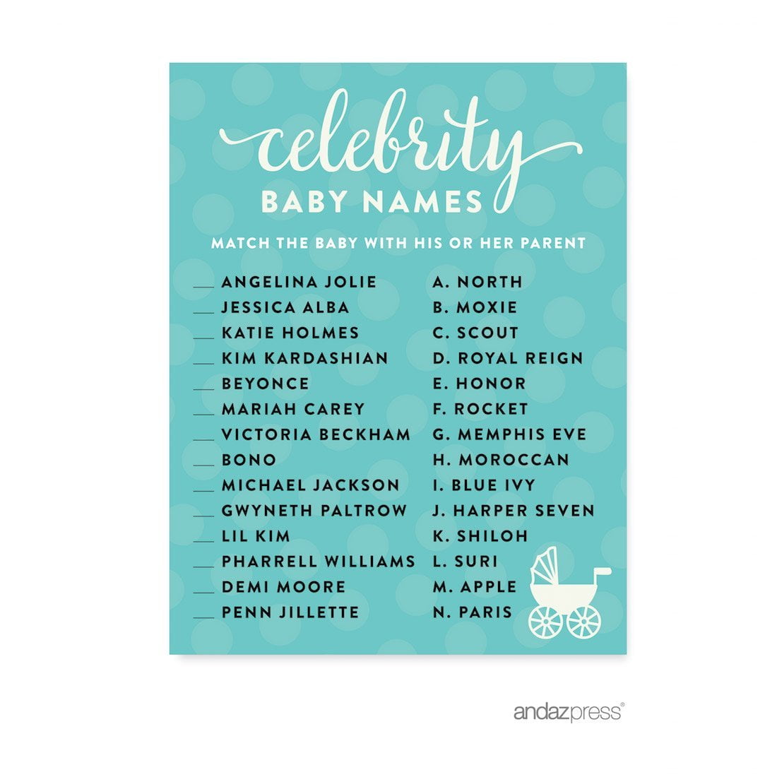 Celebrity Name Game Diamond Blue Baby & Co. Baby Shower Game, 20-Pack