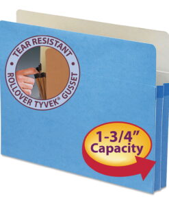 Bright colored file pockets help color-code projects. Rollover gussets reinforced with tear resistant material provides extra strength at critical points. Manila interior makes for easy labeling. Fold-down front for easy access to contents. Bottom and sides fully enclosed for extra security. Pocket/Wallet Type: Files/Papers Size: Legal Overall Expansion: 3.5" Colors: Green. Green : Paper contains 10% post-consumer recycled content, 10% total recycled content.