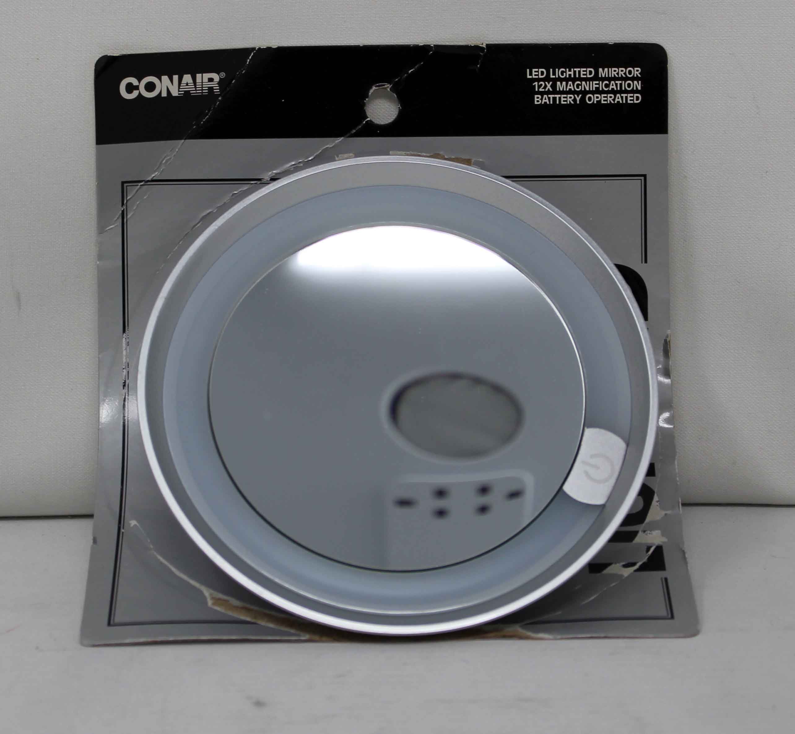 Conair has everything you need for beautiful hair. The Conair LED lighted mirror offers 12x magnification with all around lighting for perfect makeup application, precise tweezing and detailed grooming. The lighted mirror has a large suction cup that attaches to any smooth surface.