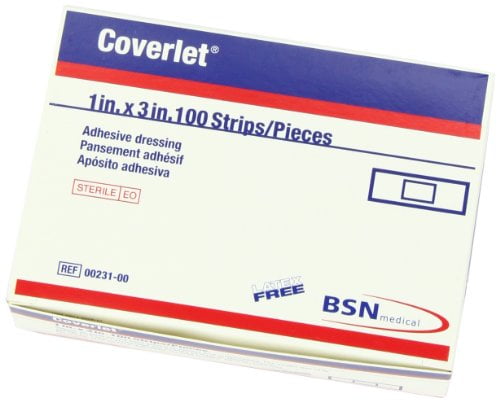 Coverlet Fabric Adhesive Bandage Strip 1" x 3", Easy to Apply while Wearing Gloves, Elastic Fabric moves with the Curves and Contours of Skin and BodyFlexible fabric adhesive is #1 in hospitals