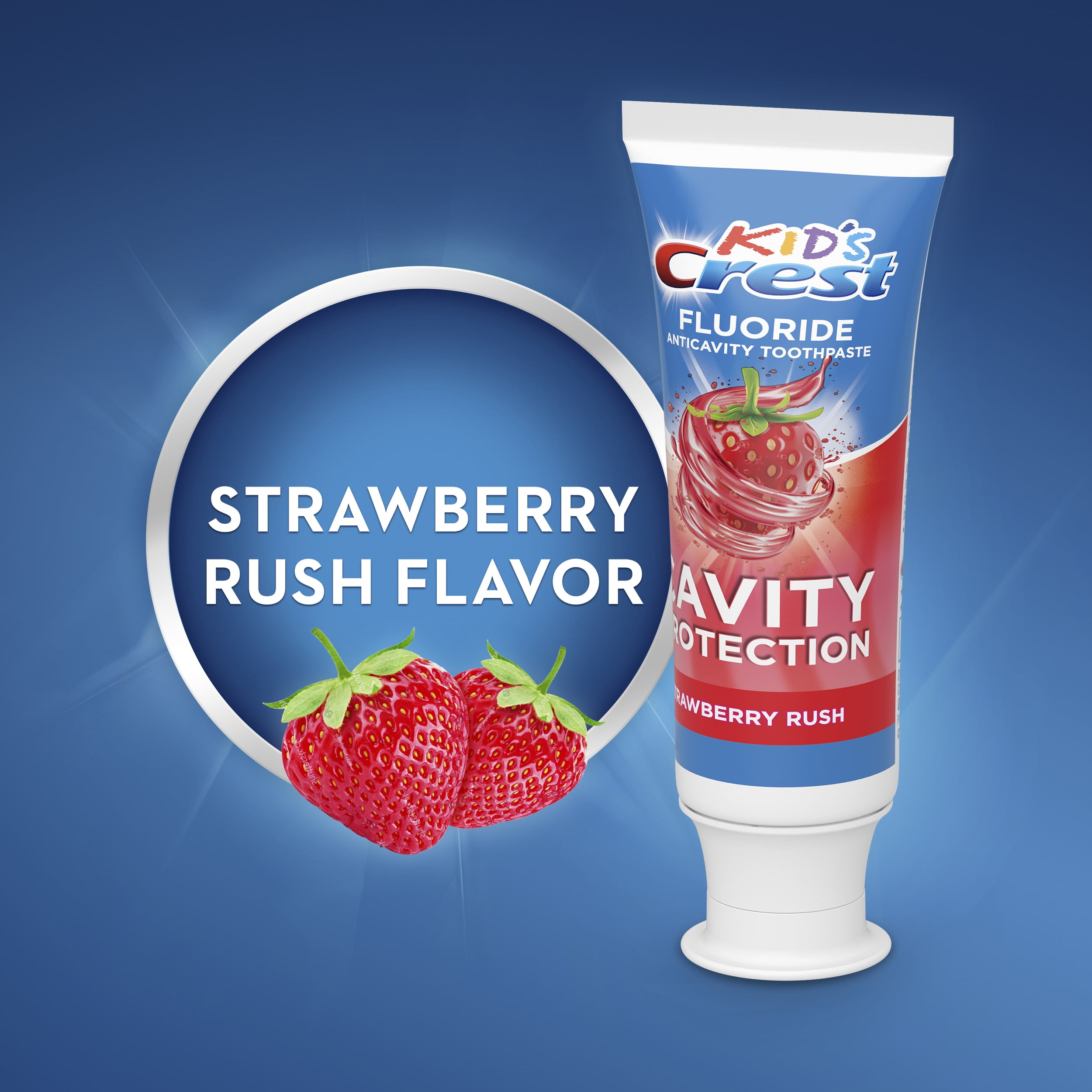 Crest Kid’s Strawberry Rush toothpaste makes brushing fun while providing the protection you expect from Crest. Our fluoride toothpaste provides effective cavity protection with a fun Strawberry flavor that still delivers fresh breath. Toothpaste is recommended for toddlers and children (2+ years) with proper supervision.