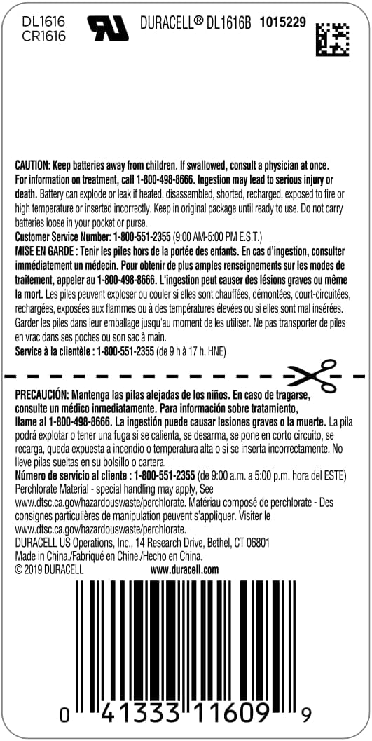 Super fresh genuine Duracell CR1616 3v batteries. Works for: Watches, computer motherboards, calculators, PDAs, electronic organizers, garage door openers, toys, games, door chimes, pet collars, LED lights, sporting goods, pedometers, calorie counters, stopwatches and medical devices and all other devices that requires this battery size. Equivalent to: CR1616, DL1616, ECR1616, BR1616,280-209, DL1616B, BR1616-1W, CR1616-1W, KCR1616, LM1616, 5021LC, L11, L28, YA,CD1616,