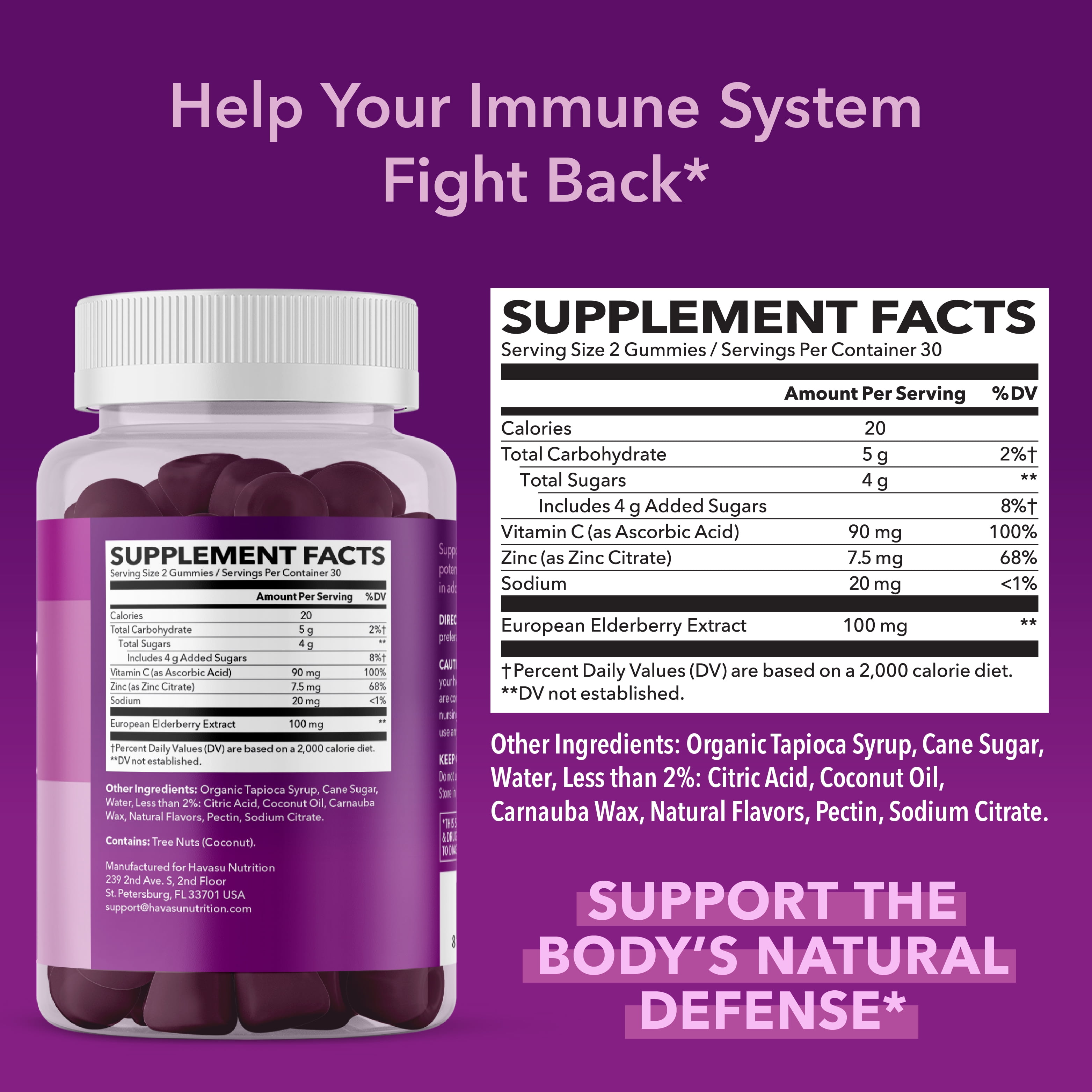 Elderberry Gummies with Zinc and Vitamin C for Ultimate Immune Support & Defense | Havasu Nutrition Sambucus Elderberry Gummy Vitamins 60 Count