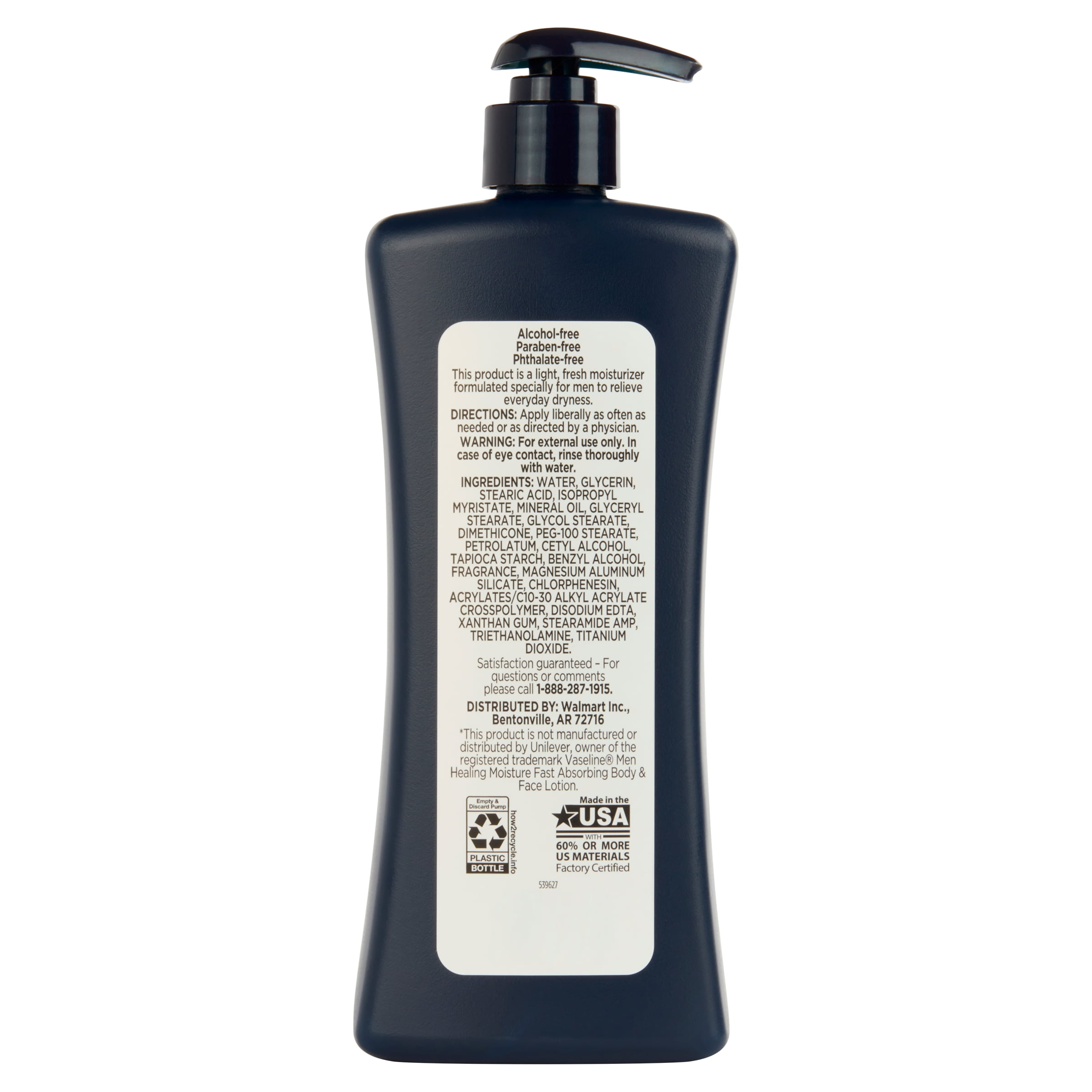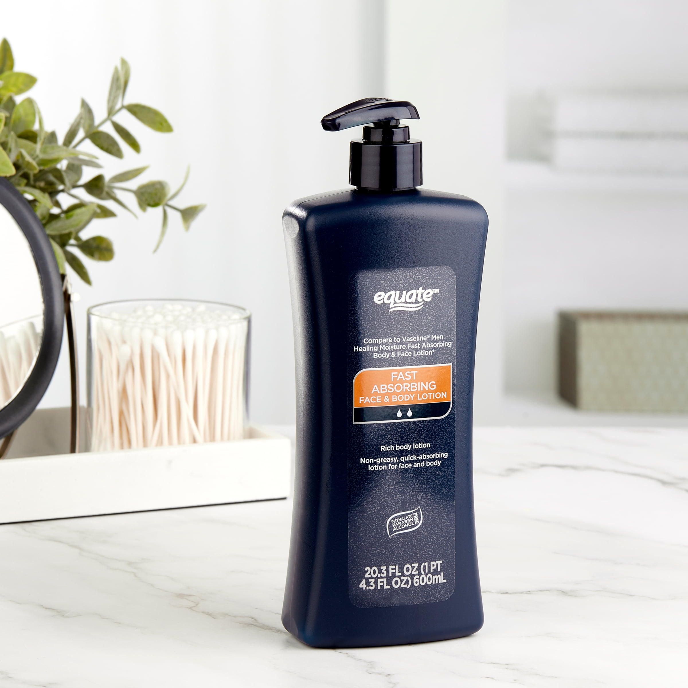 Equate Men’s Fast Absorbing Face and Body Lotion is a light, fresh moisturizer formulated especially for men to relieve everyday dryness. Your skin battles the weather every day as it takes a beating from windburn, the sun, and dry air, which can lead to painful irritation, increased razor burn, and itchy dryness. This specially made moisturizer, formulated for men’s skin, contains micro-droplets of petroleum jelly, soothing glycerin, and a powerful moisturizing complex to relieve dryness, protect and renew skin, and prepare your body for another day. It’s non-greasy and absorbs quickly to leave your skin feeling supple and resilient, not oily. Get your face ready for smooth, comfortable shaves, and even out skin tone to maintain a youthful look. Apply it to your elbows and knees to soothe any dry skin. Your whole body will thank you for using Equate Men’s Fast Absorbing Face and Body Lotion.