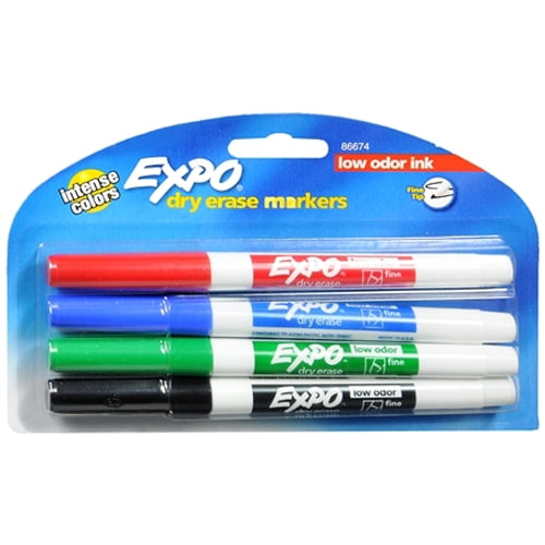 For use on whiteboards, glass and most non-porous surfaces.UPC: 071641866744 – Expo Low Odor Dry Erase Pen Style Markers – 4 Ea – For use on whiteboards, glass and most non-porous surfaces. – Expo low odor dry erase pen style markers