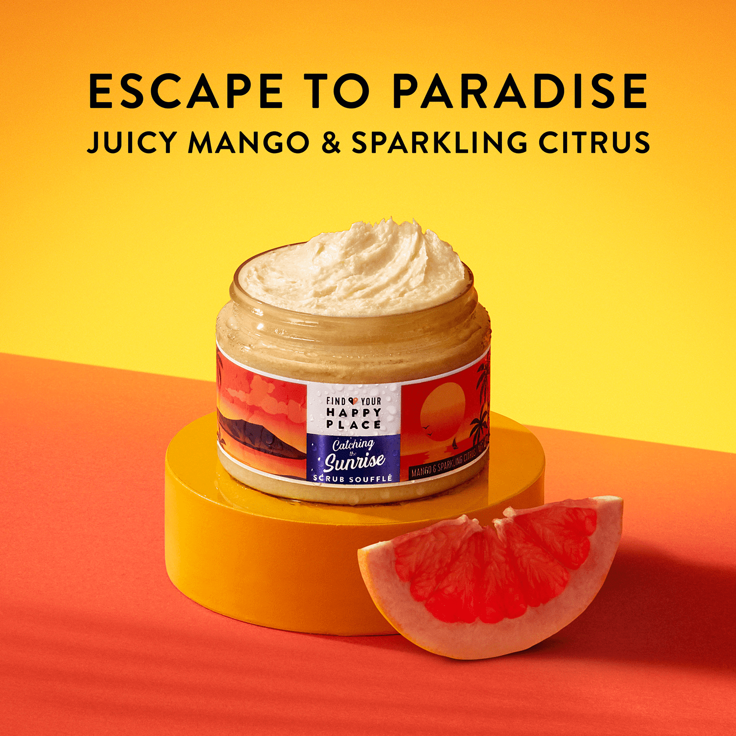 Find Your Happy Place Catching the Sunrise Body Scrub Souffle Mango And Sparkling Citrus For Radiant Skin 10 oz