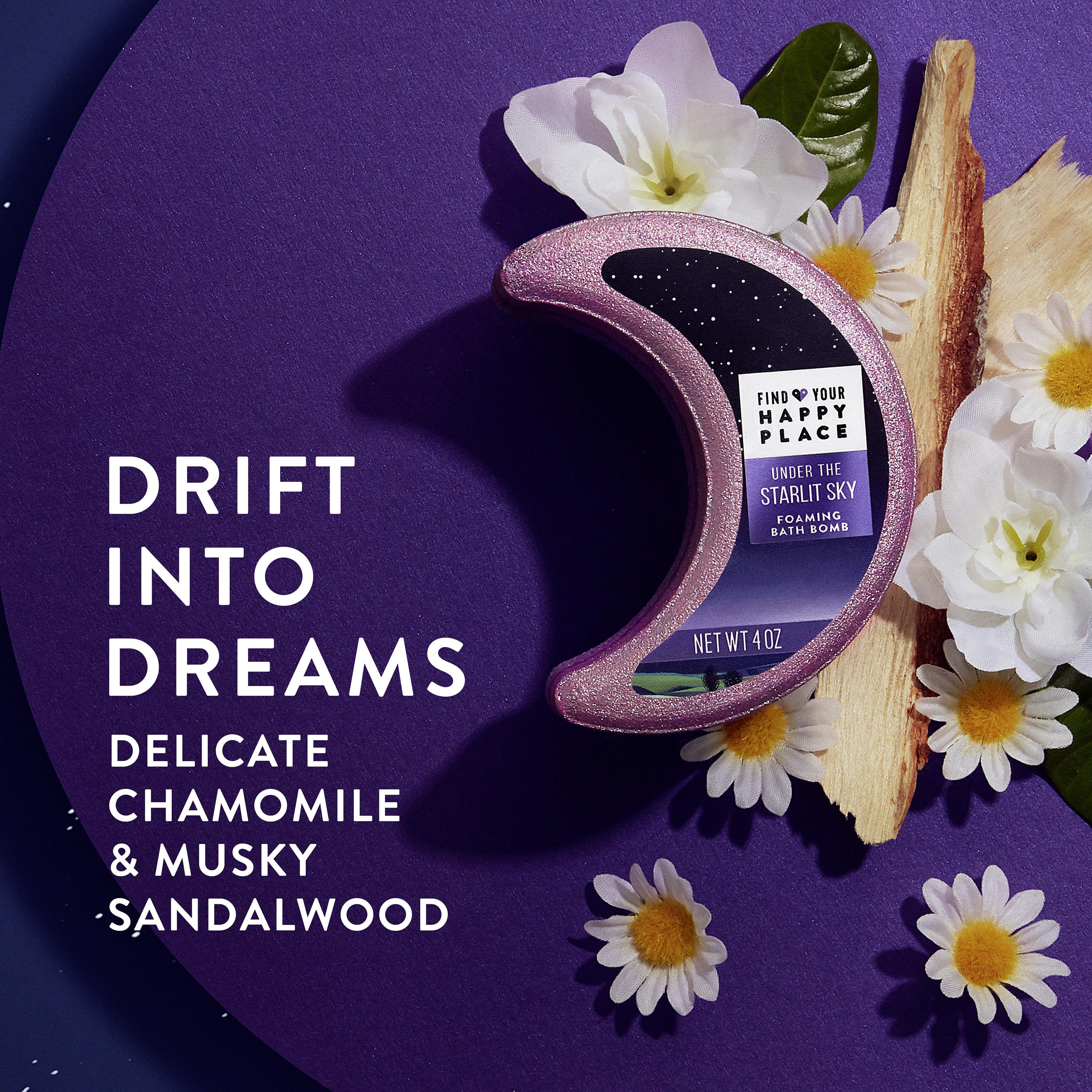 Make a wish with this foaming bath bomb. Scented with delicate chamomile and musky sandalwood with notes of fresh rosemary and tonka bean, this foaming bath bomb is gentle on skin with a fizzy release of colors and silver sparkles. Formulated to be sulfate and paraben-free with a 3X blend of shea butter, cocoa butter and vitamin E, this luxury bath product is great when you need a relaxing soak or a moment of calm. This foaming bath bomb is best paired with the complete Lazy Weekends collection of luxury bath products for an immersive sensory experience. Find Your Happy Place is a NEW brand of sensorial bath and body products that helps everyone reclaim bath time, so they can find a little peace amidst everyday stress. Find Your Happy Place reminds us of places that feel the most connected. They’re places where we find strength, peace and things that make us feel good. We asked people around the country, "How do you get to your happy place Inspired by their stories, we created bath and body collections to transport your senses to places that made others feel special. Post your story with Share your happy place and help inspire the next collection.