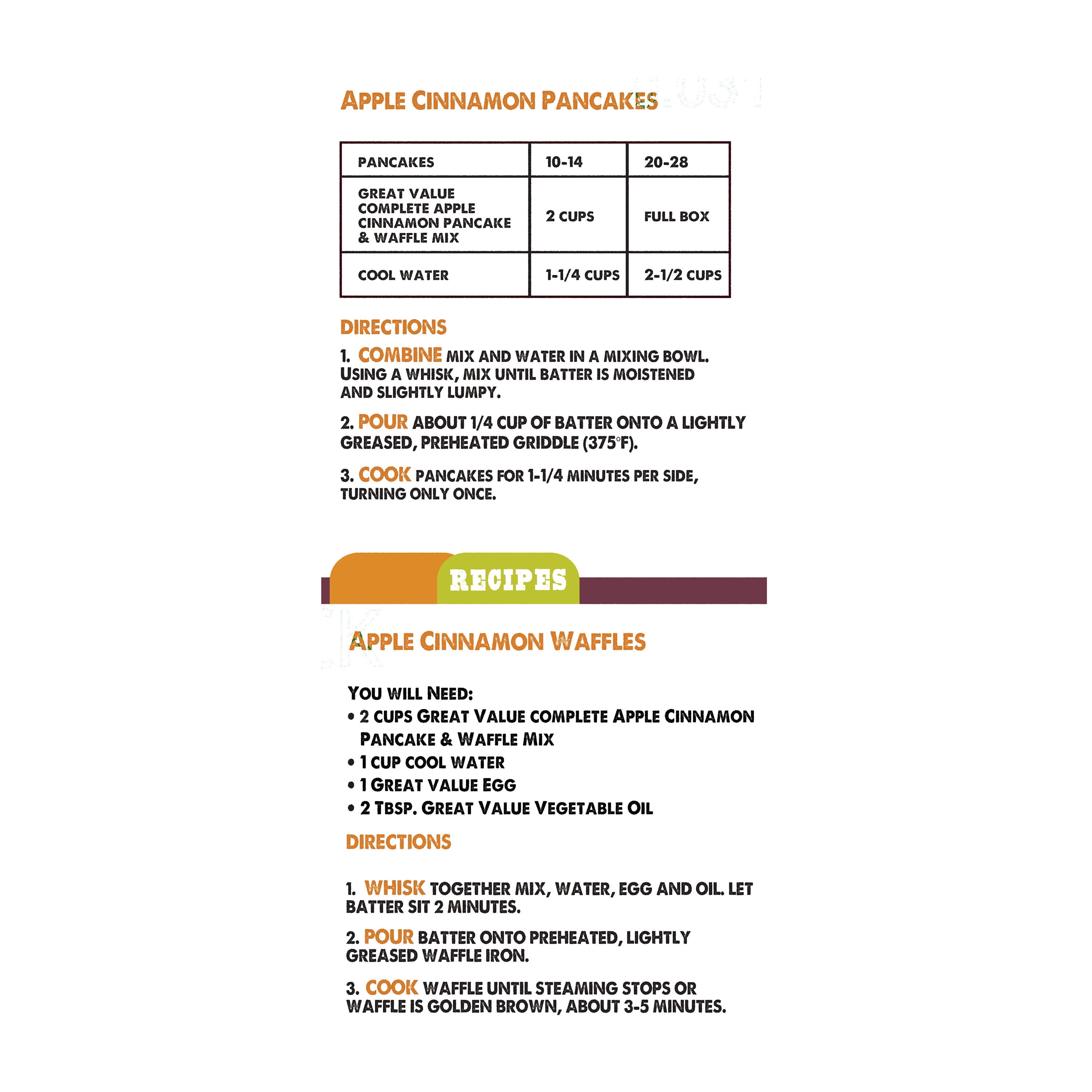 Great Value Apple Cinnamon Pancake & Waffle Mix, 16 oz: