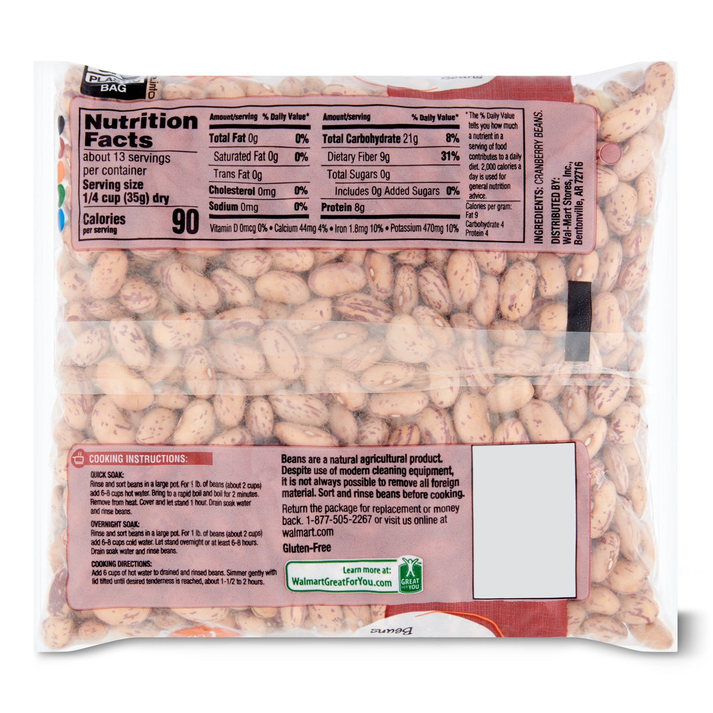 Add some filling, wholesome goodness to your winter cooking with Great Value Cranberry Beans. These creamy, flavorful beans are also known as borlotti and are named for their distinctive, pink-flecked shells and pods. Harvested in late summer and fall and dried for winter use, they’re delicious tossed with herbs and olive oil for a simple, robust side dish and are a hearty addition to stews and soups. Dress them with a garlicky vinaigrette and add them to a simple farmhouse salad, or use them as the base for show-stopping baked beans. Discover your new favorite legume with Great Value Cranberry Beans.