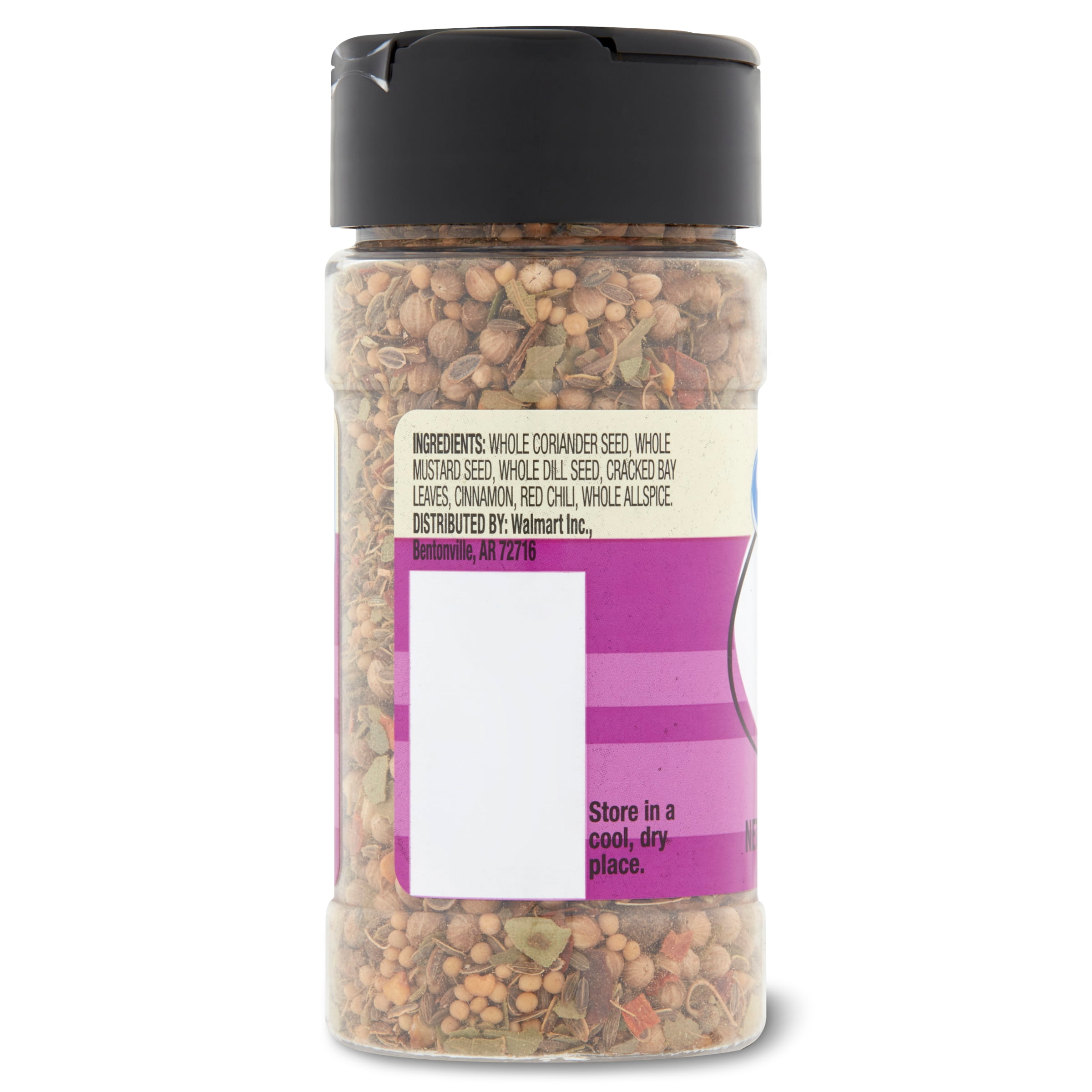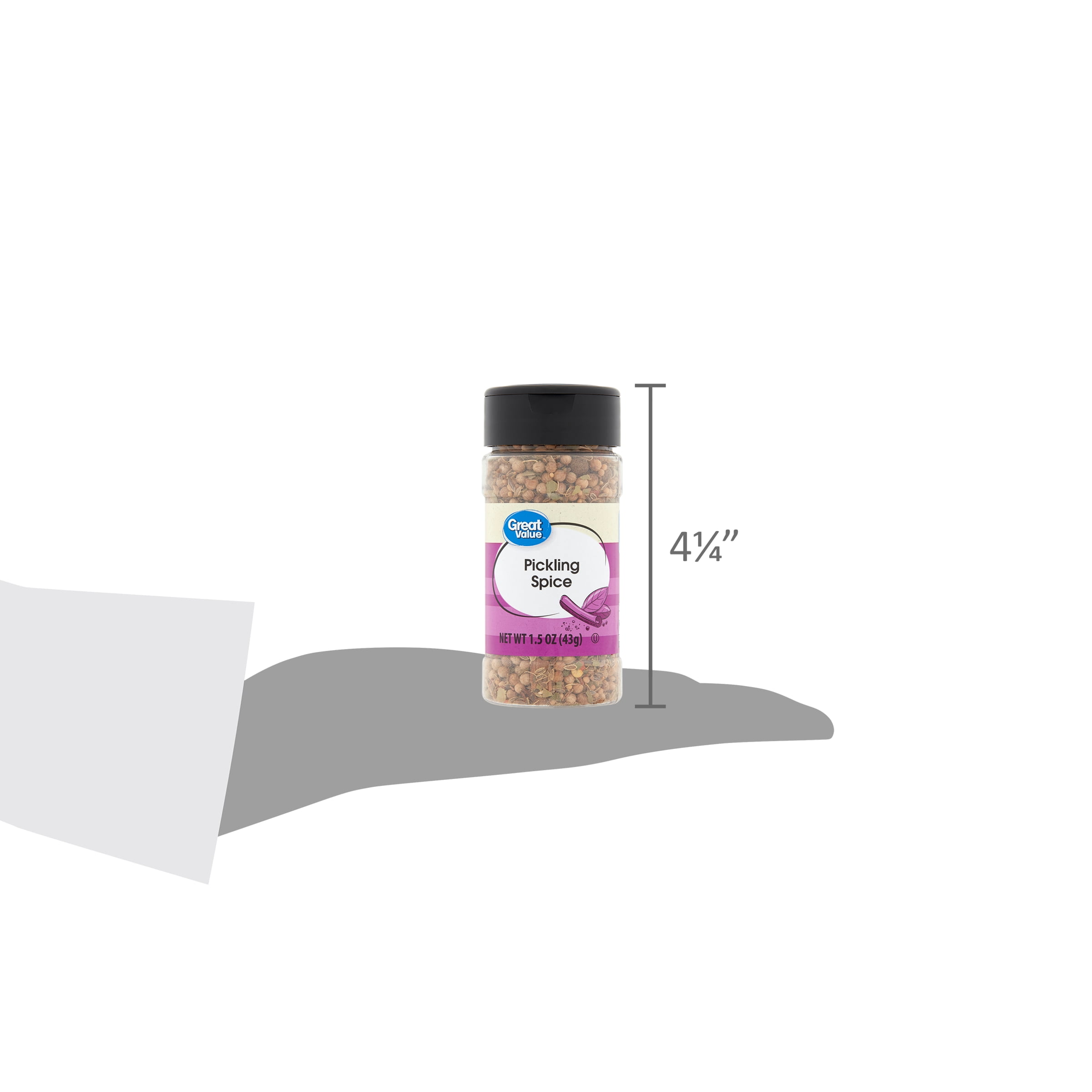 Expand your spice rack with high-quality seasonings like our Great Value Pickling Spice. Our pickling spice prepares you to make your best pickles yet. With a combination of whole coriander seed, whole mustard seed, whole dill seed, bay leaves, cinnamon, red chili, and whole allspice, you’ll have all the flavor you need to make a delicious batch of crisp and crunchy snacks. Be sure to check out more great products from our selection of Great Value spices and stay stocked up on all your frequently used favorites. Try something new and make something great with our Great Value Pickling Spice.