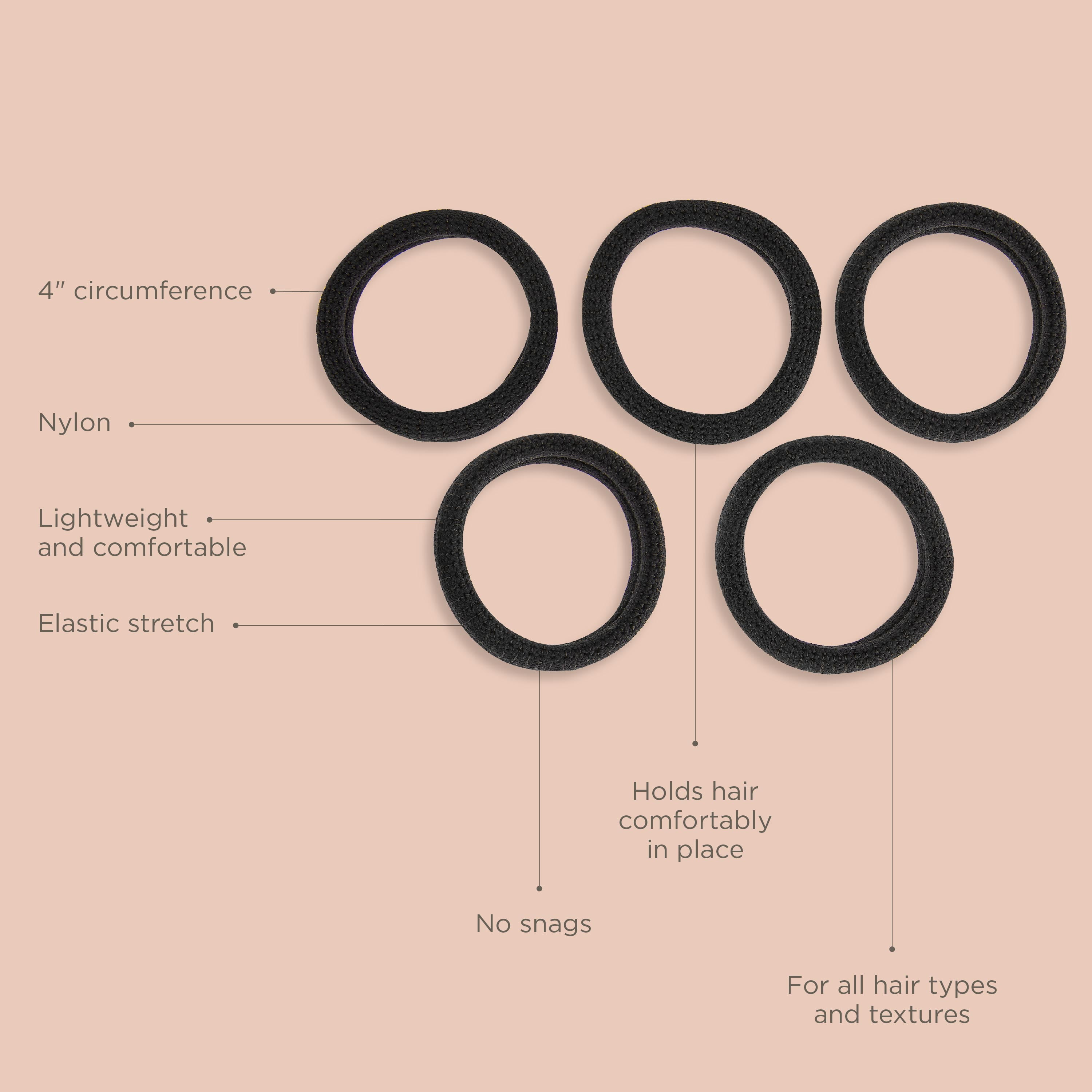 These thick hair ties are ideal for coarser hair types with no slipping, snagging, or stretching. Great for everyday wear, working out and to sleep in. Perfect for the curly girl.