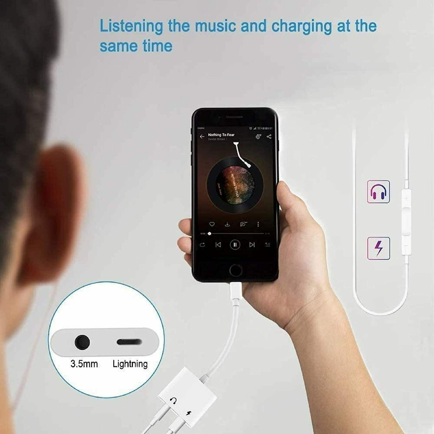 Headphone Adapter for iPhone, 2 in 1 Lightning to 3.5mm AUX Audio + Charger