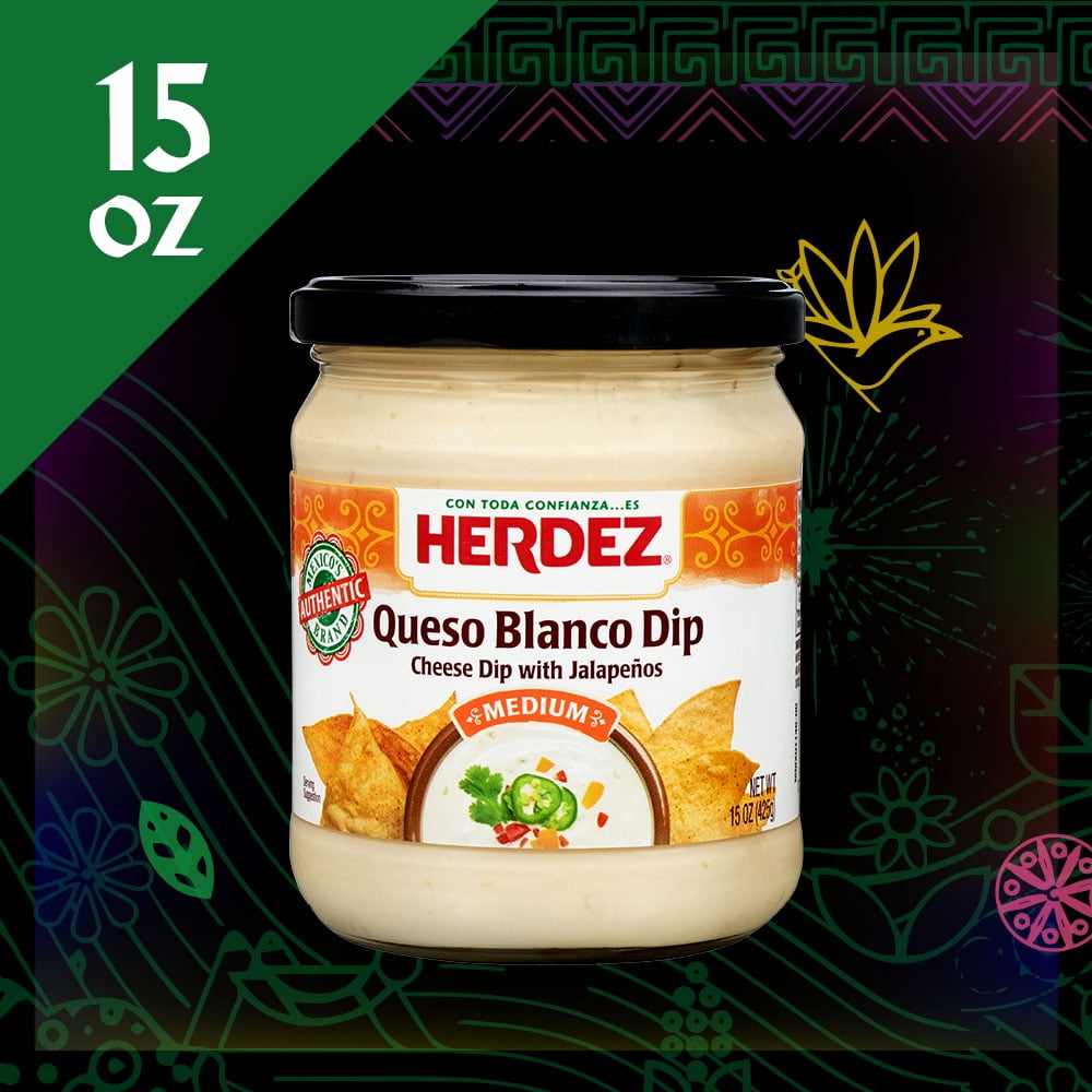 HERDEZ Queso Blanco con Jalapeños Queso Dip delivers fire and flavor in the perfect cheese dip. Featuring the right amount of heat from jalapeño peppers and traditional Mexican spices, this creamy queso sauce is the perfect dip for chips or cheesy topper for Mexican dishes. When you’re looking for a shortcut into the heart and soul of real Mexican cooking, you can?t get more authentic than HERDEZ, the #1 salsa brand in Mexico. HERDEZ is a trademark of Herdez, S.A. de C.V. sociedad anonima.