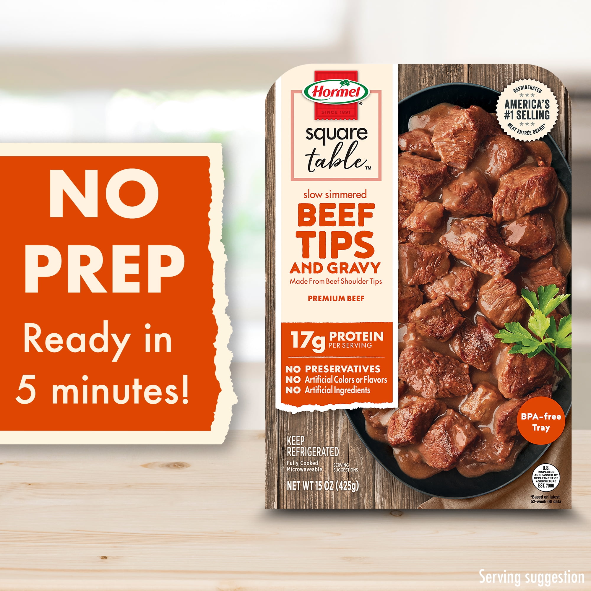 HORMEL SQUARE TABLE Slow Simmered Beef Tips & Gravy Refrigerated Entrée, 15 oz