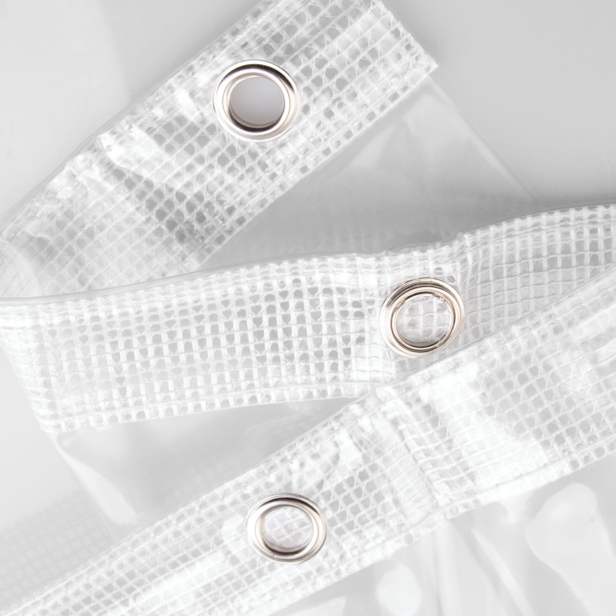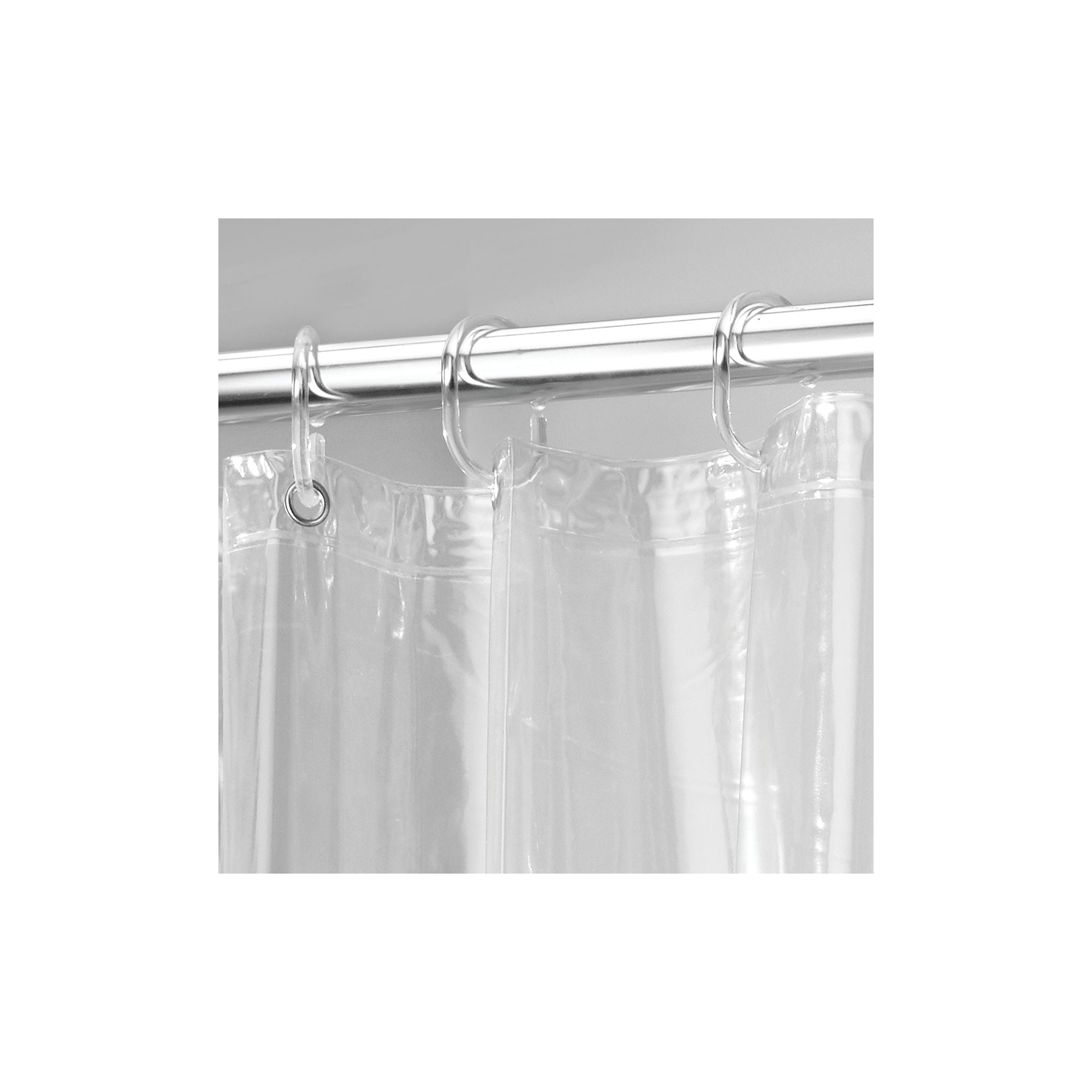 Add style and function to your bathroom with the iDesign Heavy Duty Vinyl Shower Curtain Liner. This fast-drying, waterproof shower curtain can be used on its own or paired with a fabric curtain as a liner to keep water in the shower and off of your bathroom floors. Made with heavy duty 10 gauge PVC vinyl, this shower liner is designed with rustproof metal grommets and a reinforced header that stand up to every day use. The weighted hem with magnets ensures the liner stays in place when getting into and out of the shower. It is also easy-care and low-maintenance – simply wipe clean with a damp cloth. It can be used with any style hooks or rings including C-hooks, S-hooks, or roller rings, and it is compatible with both straight and curved curtain rods. The sleek transparent design matches a variety of bathroom decor styles.