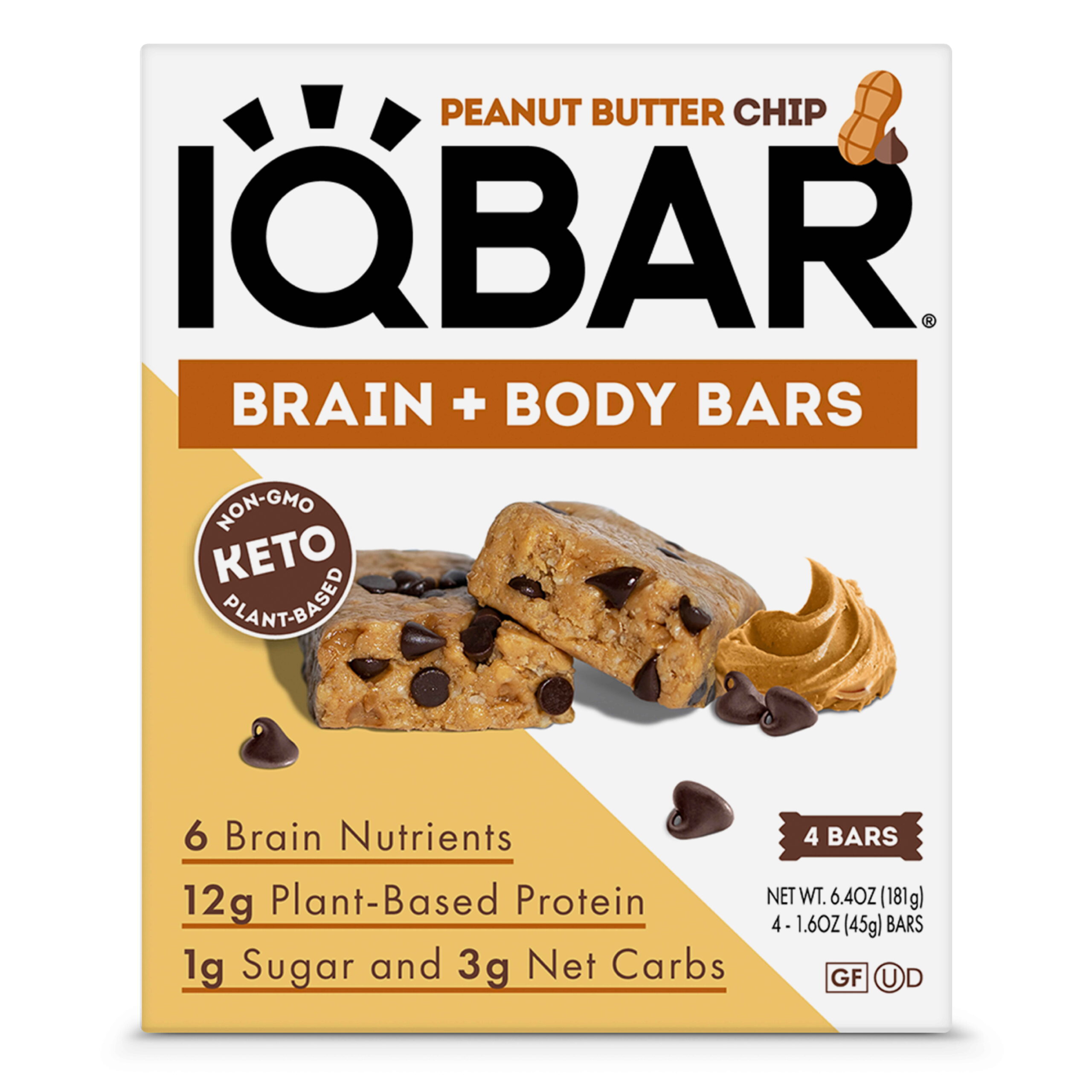 IQBAR Brain and Body Keto Protein Bars – Peanut Butter Chip Keto Bars – 4-Count Protein Bars