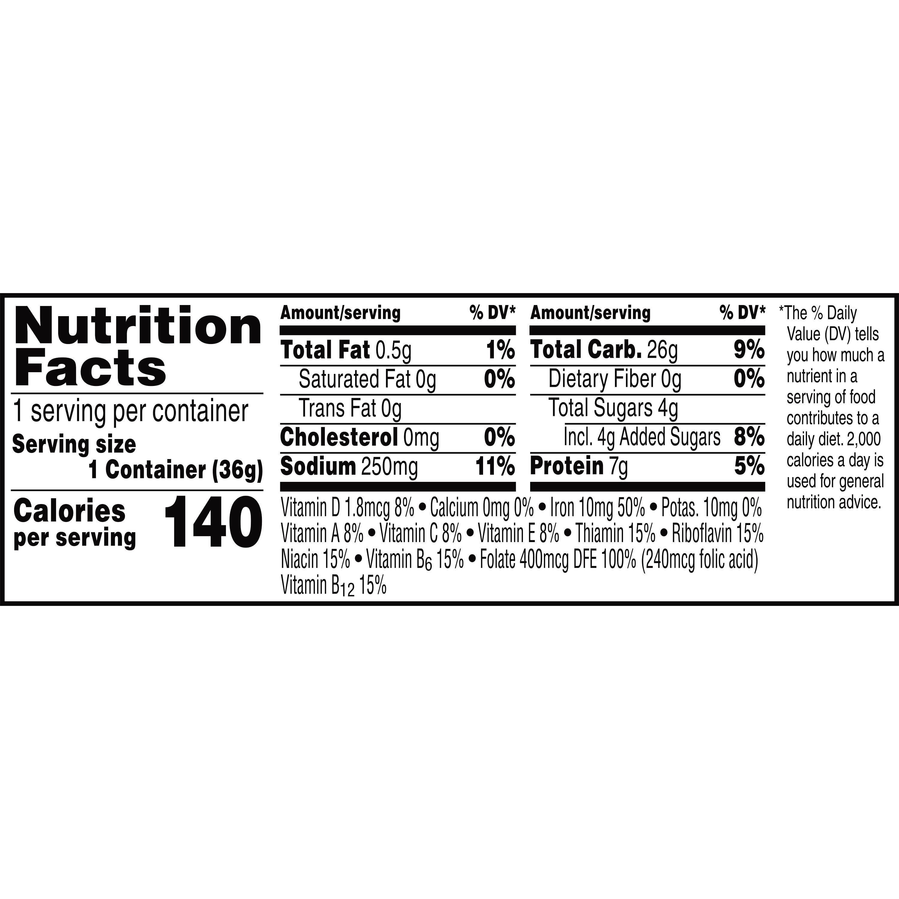 - Convenient, ready to eat cereal that comes in a disposable 1.25 ounce cup with no mess or clean up required; a quick and easy meal or snack on the go