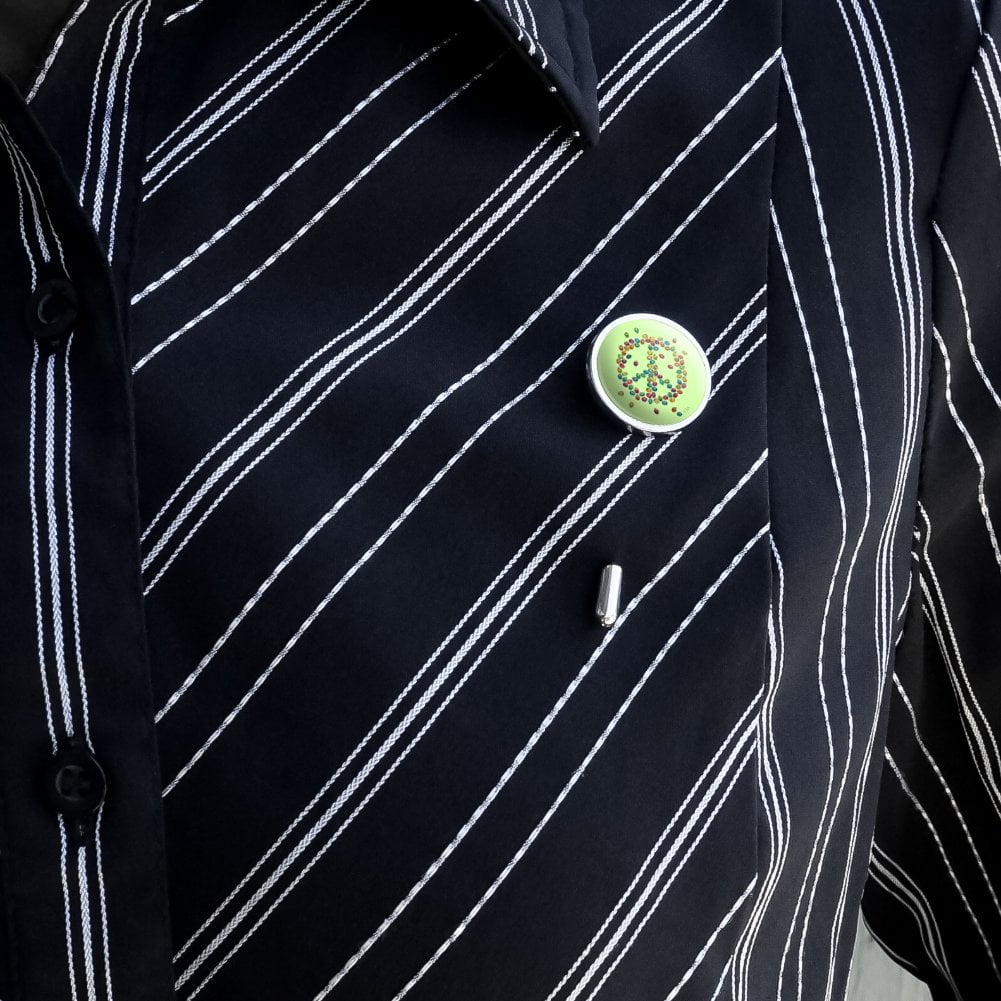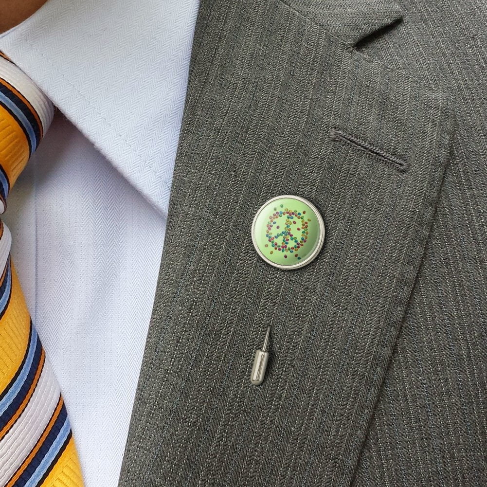 - This pin has a nickel plated mirror finish, and includes the resin-topped design as shown.