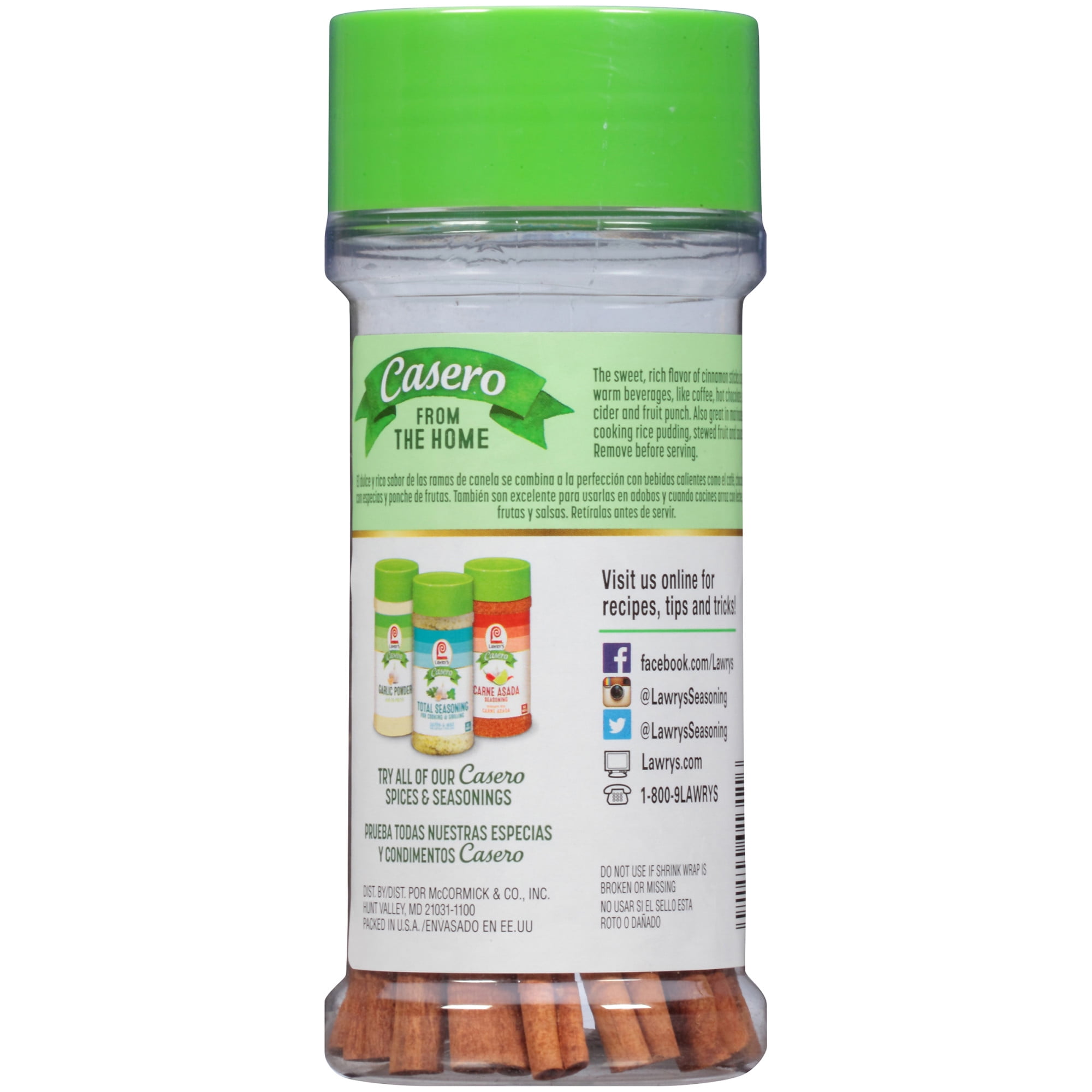 Woody, earthy and bursting with a sweet, spiced aroma, Lawry’s Casero Cinnamon Sticks (Canela) add warm flavor to hot drinks, oatmeal and desserts. They also bring subtle sweetness to savory dishes like moles, chili, stews and braised meats. The sweet, rich flavor of cinnamon is perfect for coffee, hot chocolate, tea, spiced ciders and punch – try steeping the stick in the beverage or using as a stirring stick. Also great for rice pudding, flan, stewed fruits and sauces. For freshly ground cinnamon that imparts a stronger flavor and aroma than ground cinnamon in the bottle, grate sticks then use a spice grinder to create a fine powder. Since 1938, Lawry’s is the brand you know and trust for spices and seasonings that make a good meal great.