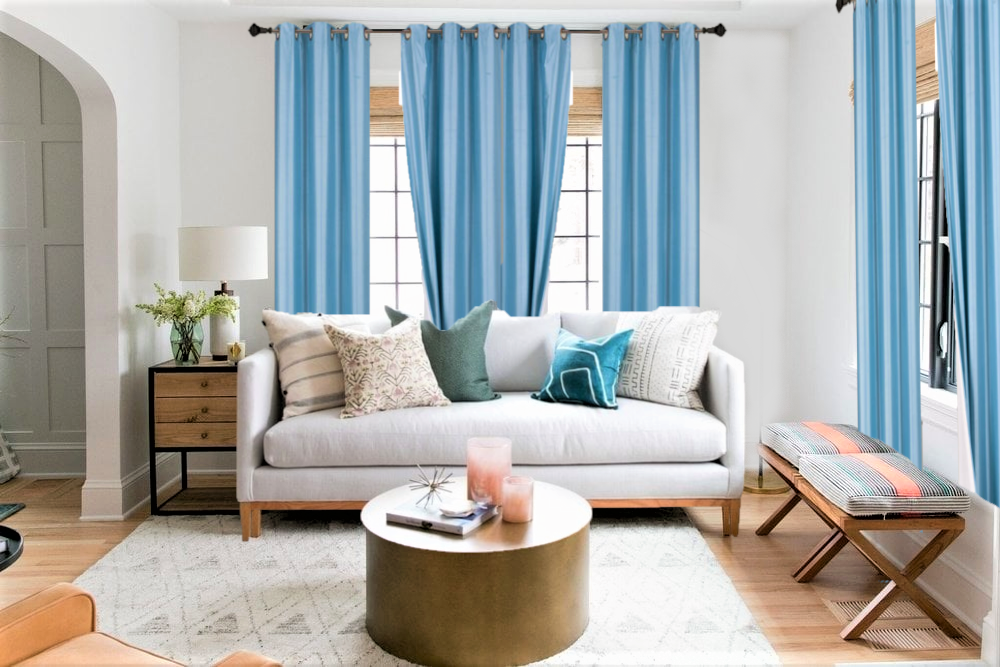 Light Blue 1-Piece Adam Solid Blackout Grommet-Top Window Curtain Panel 37′ W X 63′ L