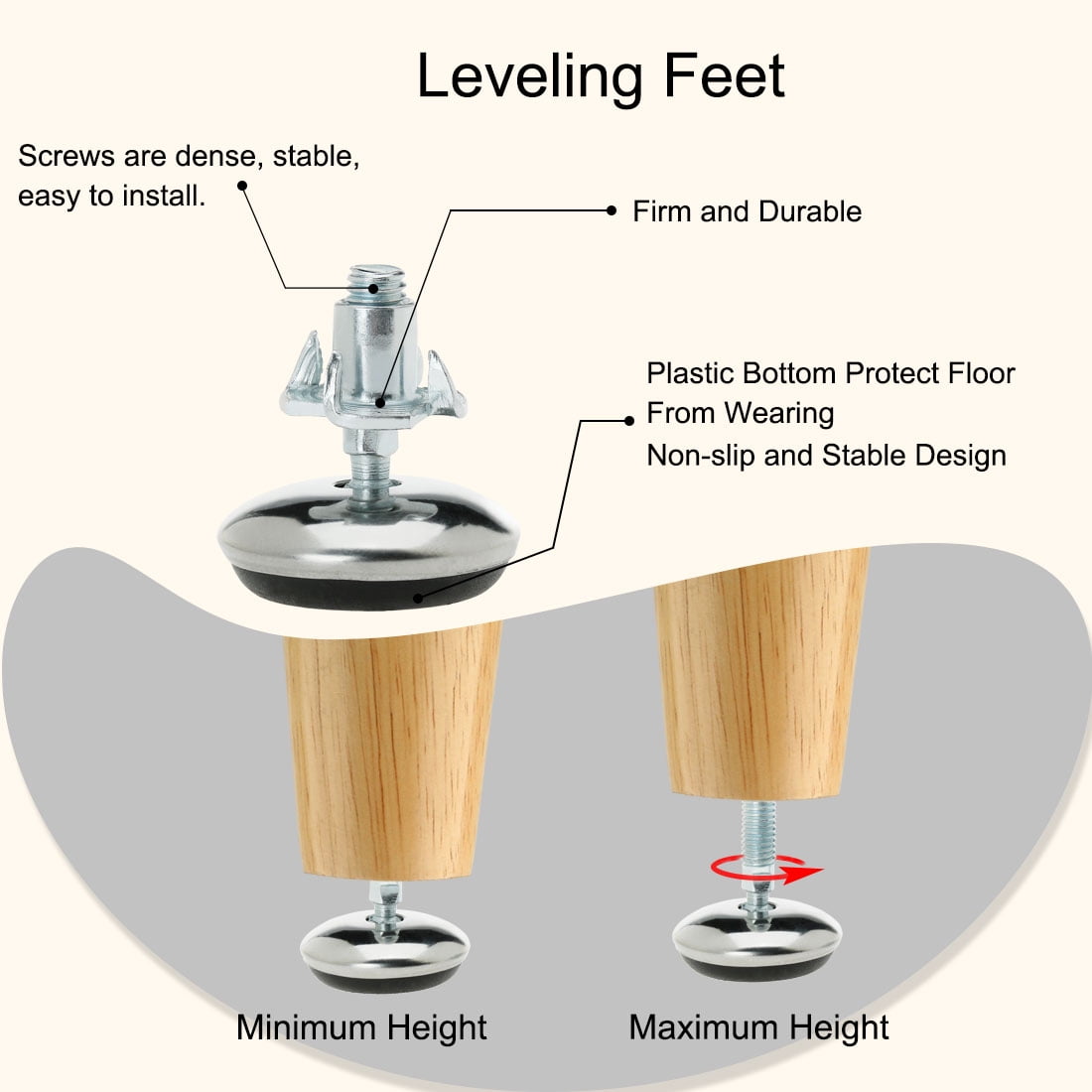 1. The length of the screw can be adjusted according to the needs during the use. You can use these leveling feet to install your product feet.