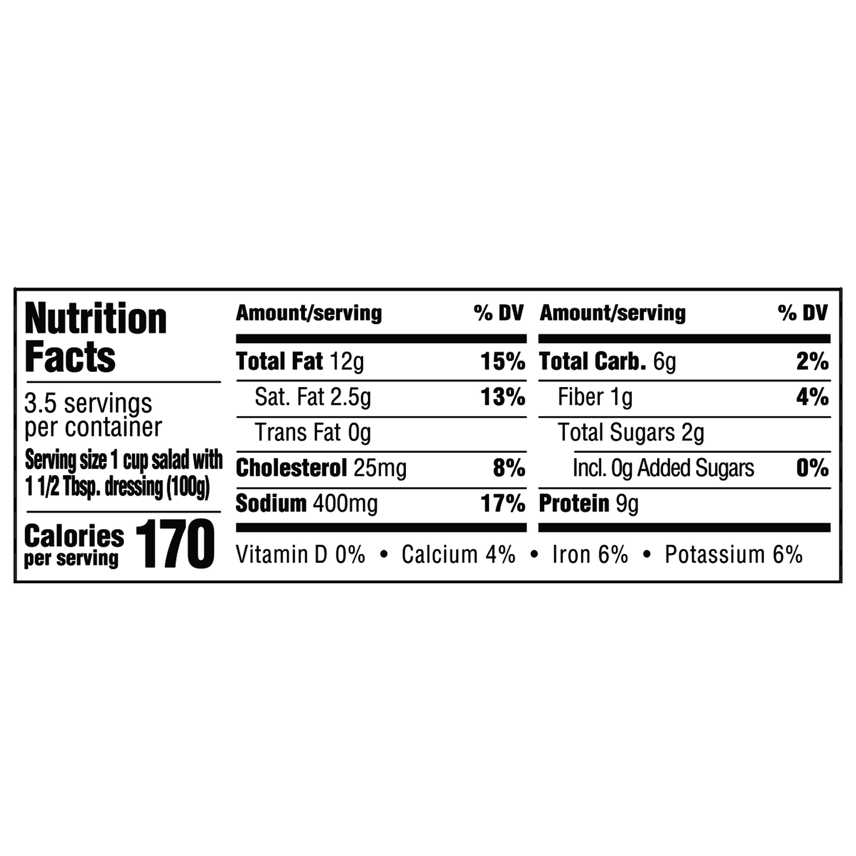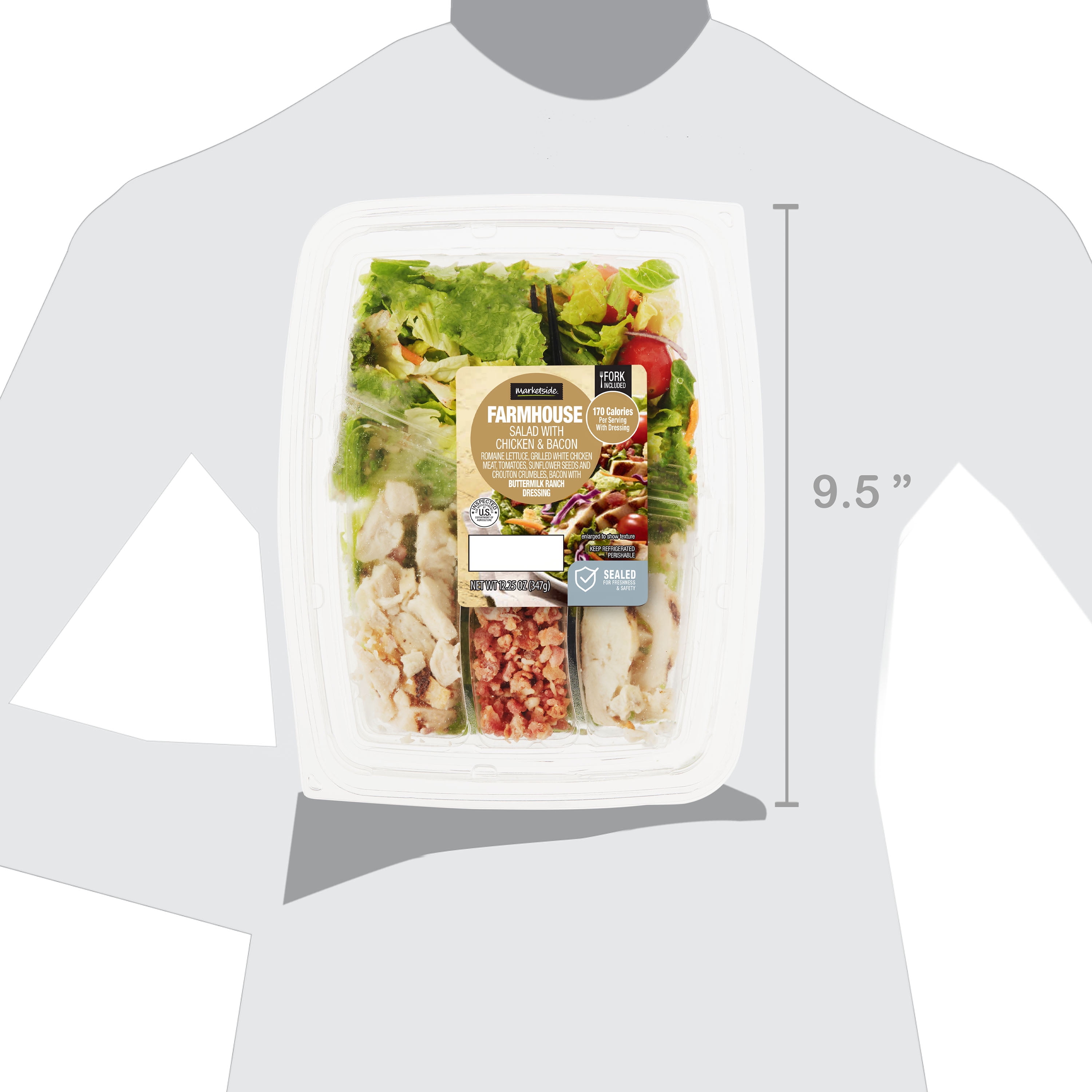 Marketside Farmhouse Ranch Salad with Chicken and Bacon is a fresh all-in-one meal that you can take on the go. This salad has a crispy lettuce blend, grilled white chicken meat, grape tomatoes, sunflower seeds, garlic cheese crouton crumbles, bacon, and buttermilk ranch dressing. Some of the ingredients are packaged separately for maximum freshness. Everything is included for a delicious and healthy lunch, even the fork. Have a hearty, no-fuss meal with Marketside Farmhouse Ranch Salad with Chicken and Bacon. Fresh ideas and quality ingredients, that’s how Marketside brings the best foods to your table. We are committed to delivering freshness that you can taste and see. Marketside offers the best in fresh food, guaranteed by Walmart, working in partnership with farmers, bakers, and chefs for the highest quality, authentic ingredients, and favorite recipes.