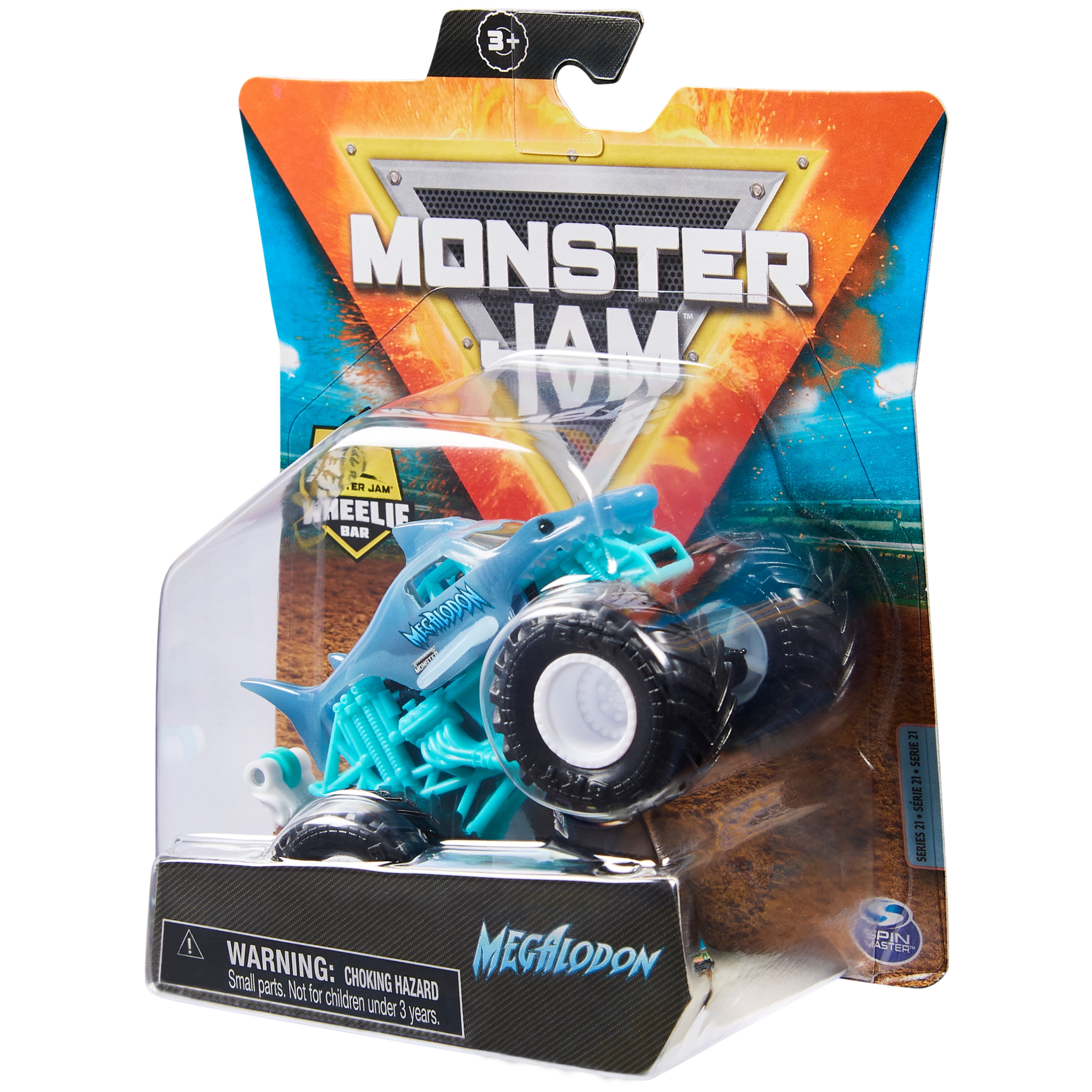 - Includes: 1 Monster Jam 1:64 Scale Monster Truck, 1 Wheelie Bar, 1 Collectible Poster