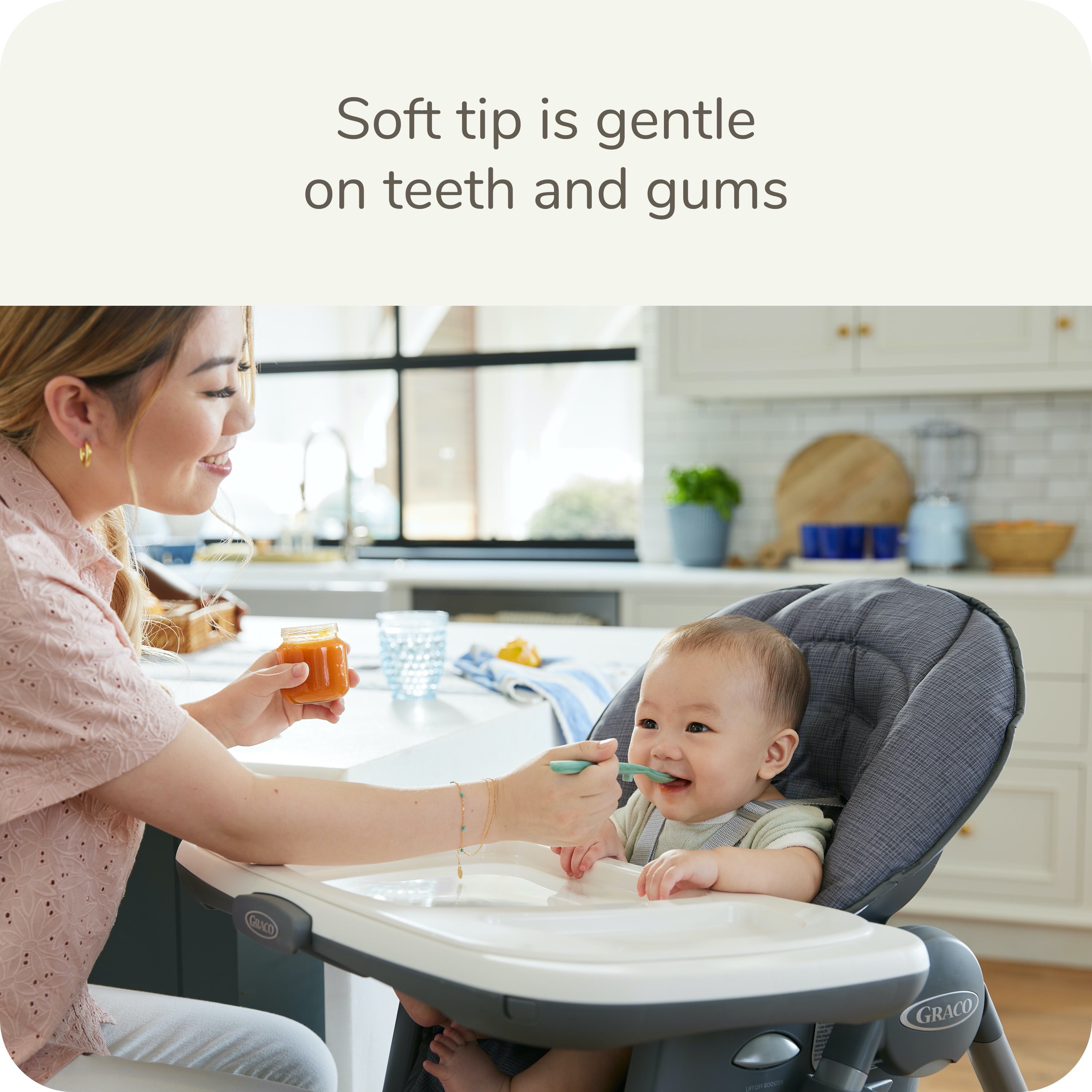 - The soft tip of these baby spoons is gentle on teeth and gums, making feeding time a little more pleasant for everyone