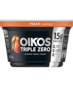 Oikos Triple Zero Greek Nonfat Yogurt gives you all the flavor you seek in a Greek yogurt–but with 0 added sugar*, 0 artificial sweeteners, and 0 fat, with 15 grams of protein per 5.3 oz cup. Full of delicious cherry flavor, this Greek nonfat yogurt makes a delicious snack any time of day. It also fits into a healthy lifestyle, providing important nutrients such as calcium, protein, and vitamin D. And for your convenience, Oikos Triple Zero Greek Nonfat Yogurt comes packaged in single-serve cups, perfect for snacking on the go.