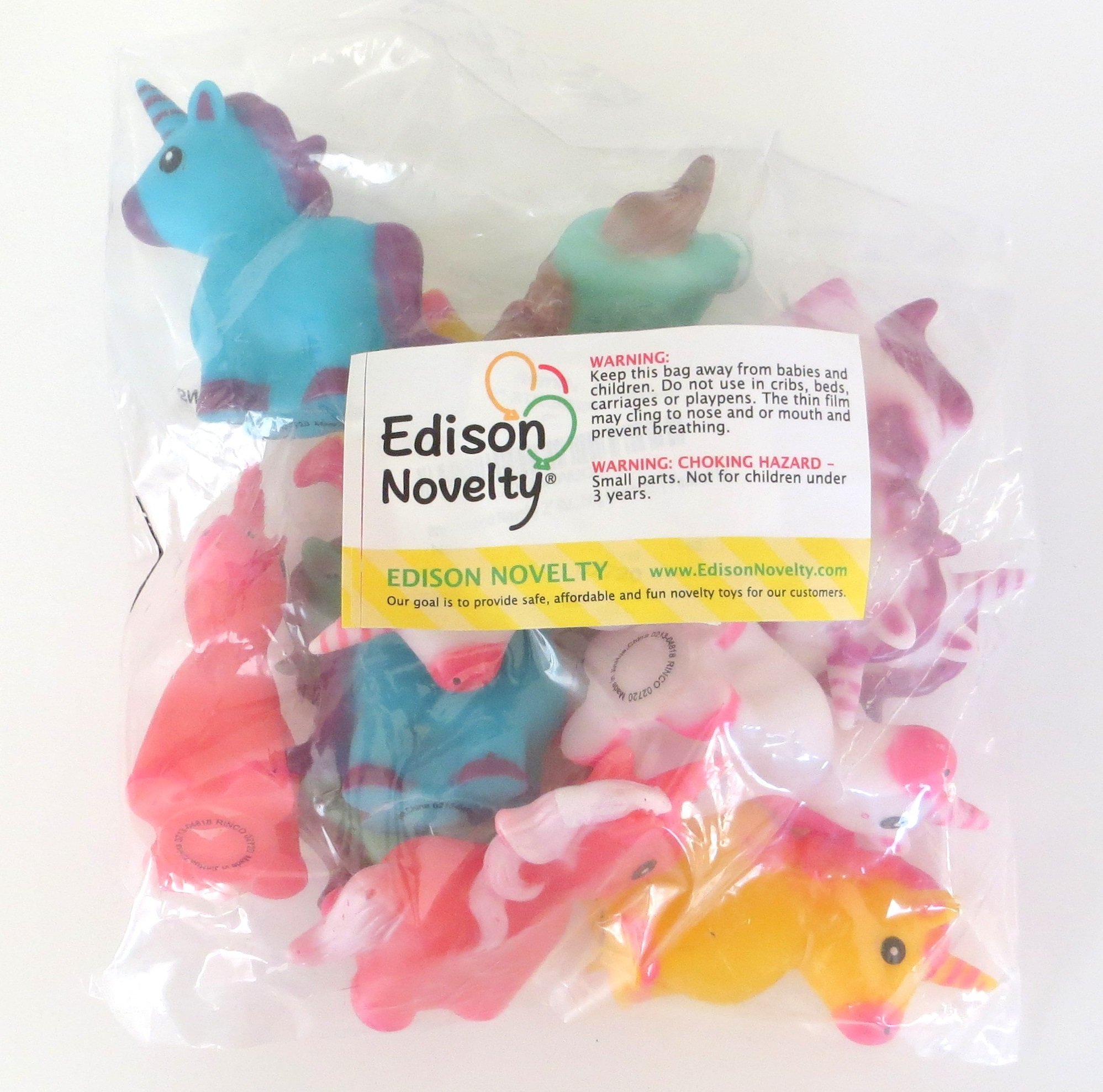 A proven winner for bath time or at the beach or in the pool. Submerge, squeeze, and squirt. This collection of unicorn squirt figures features a variety 6 colors you should get 2 each for a total of 12. For ages 3+.