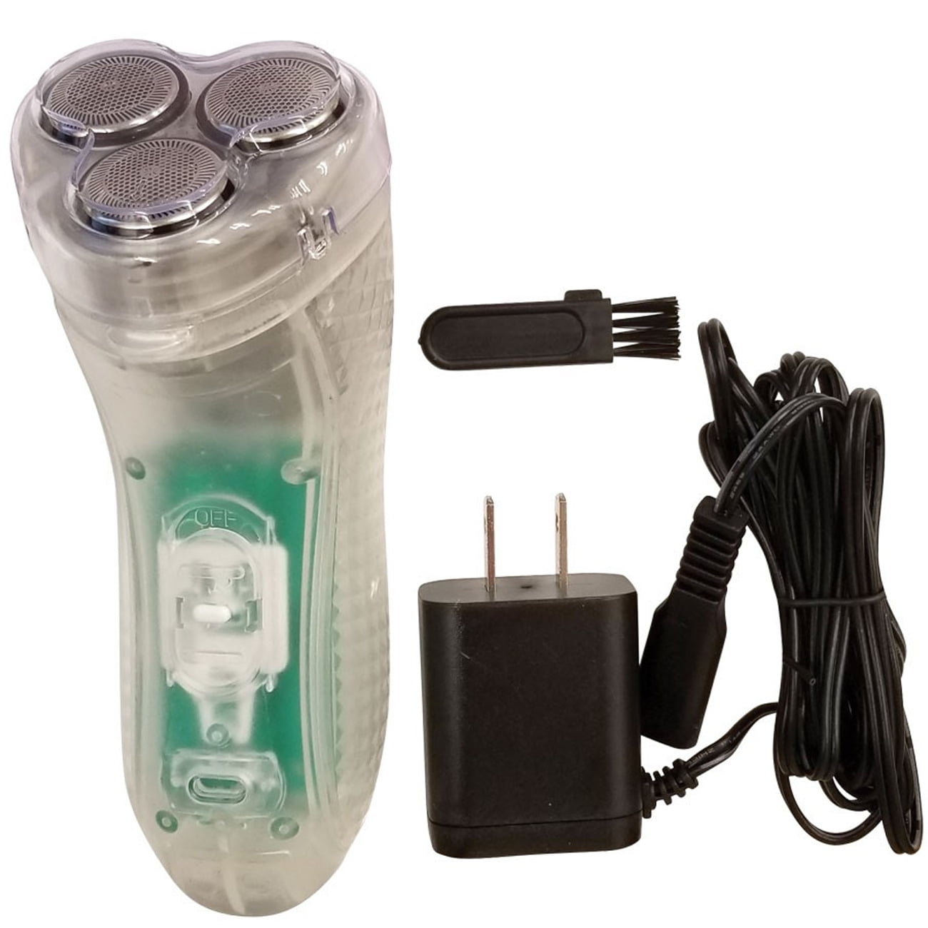 Optimus shaver features triple shaving system with ultra thin stainless steel blades for perfect shave. Cleaning brush and AC charger included. 8 hours charging time. 30 minutes shaving time.