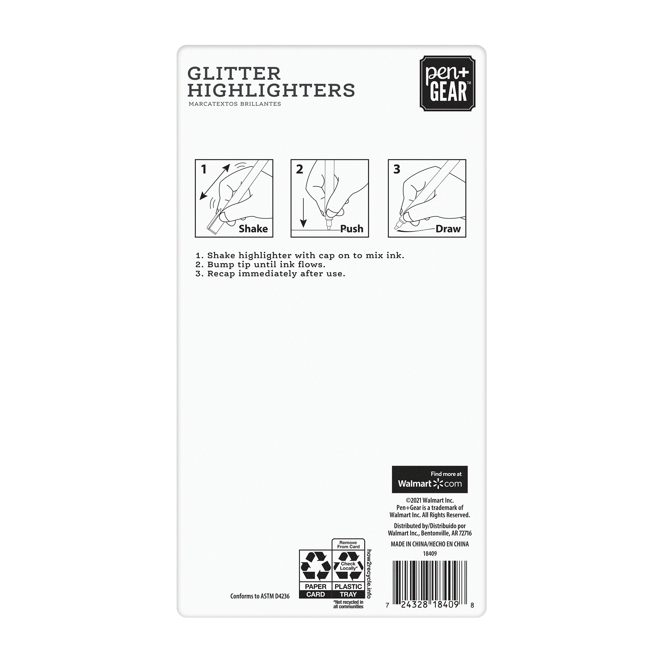 Pen + Gear Glitter Highlighters, Assorted Colors, 6 Count