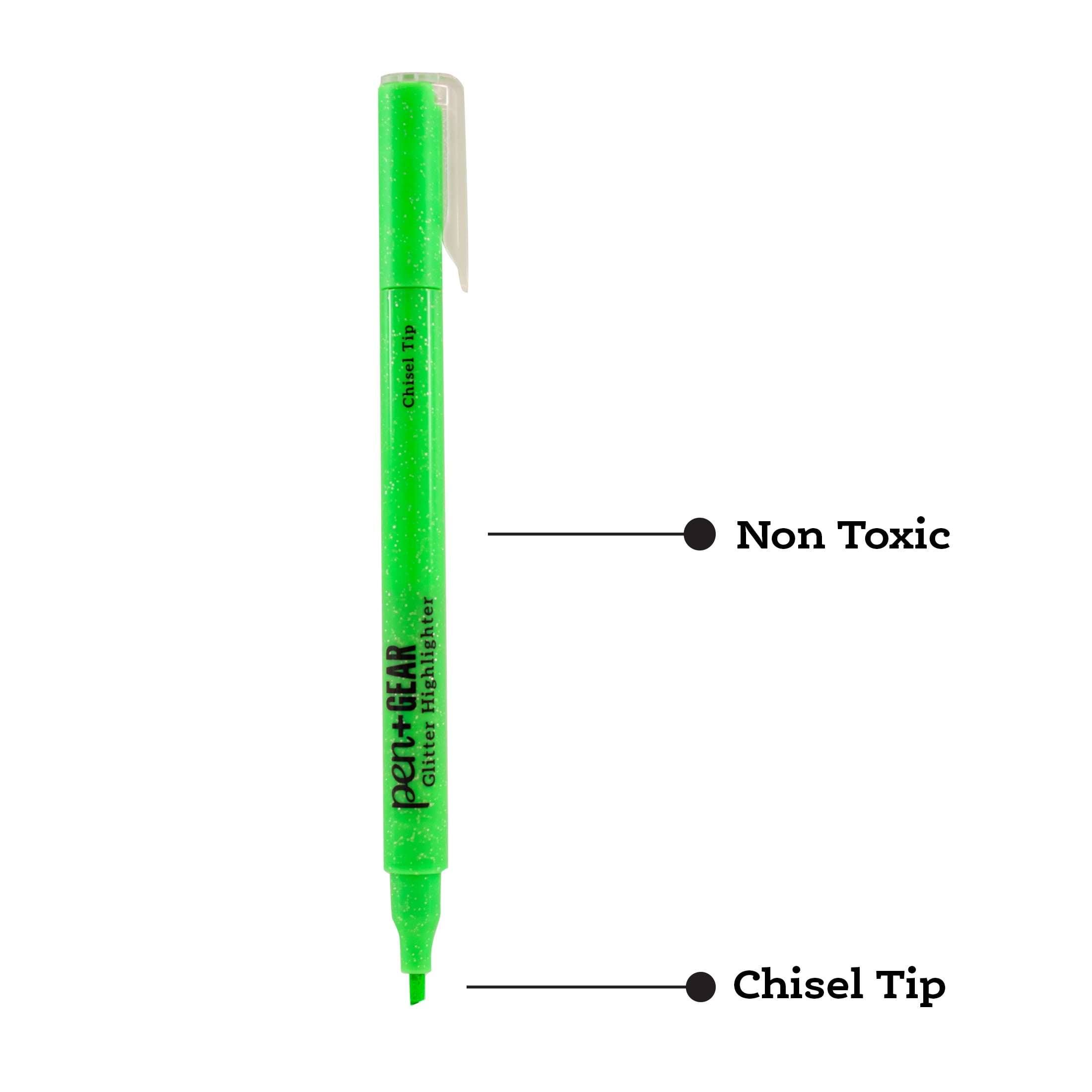 Make your own glittery fun with our Pen+Gear Glitter Highlighters. The chisel tips offer bold see-through color while the glitter ink adds sparkle. With 6 glittering nontoxic colors to choose from, these versatile highlighters will add sparkle to all your note-taking, drawing, posters, party invitations, and art projects. Whether you’re a student, teacher, scrapbooker, or glitter enthusiast, you’re sure to love our Pen+Gear Glitter Highlighters. Be sure to check out the complete line of Pen+Gear products for all of your home, school, or office essentials