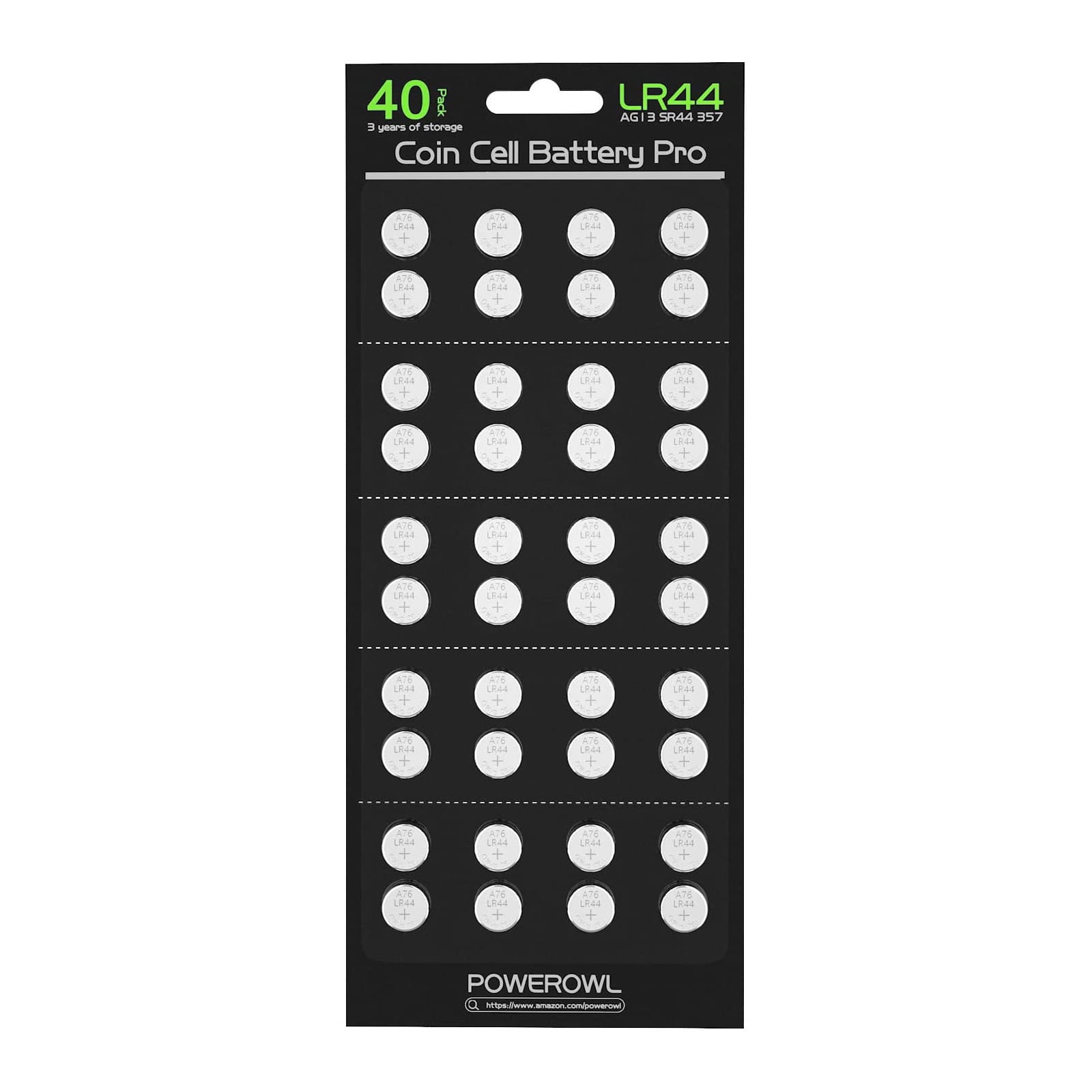 Powerowl 40 Pack LR44 AG13 357 303 SR44 Battery 1.5V Button Cell Batteries