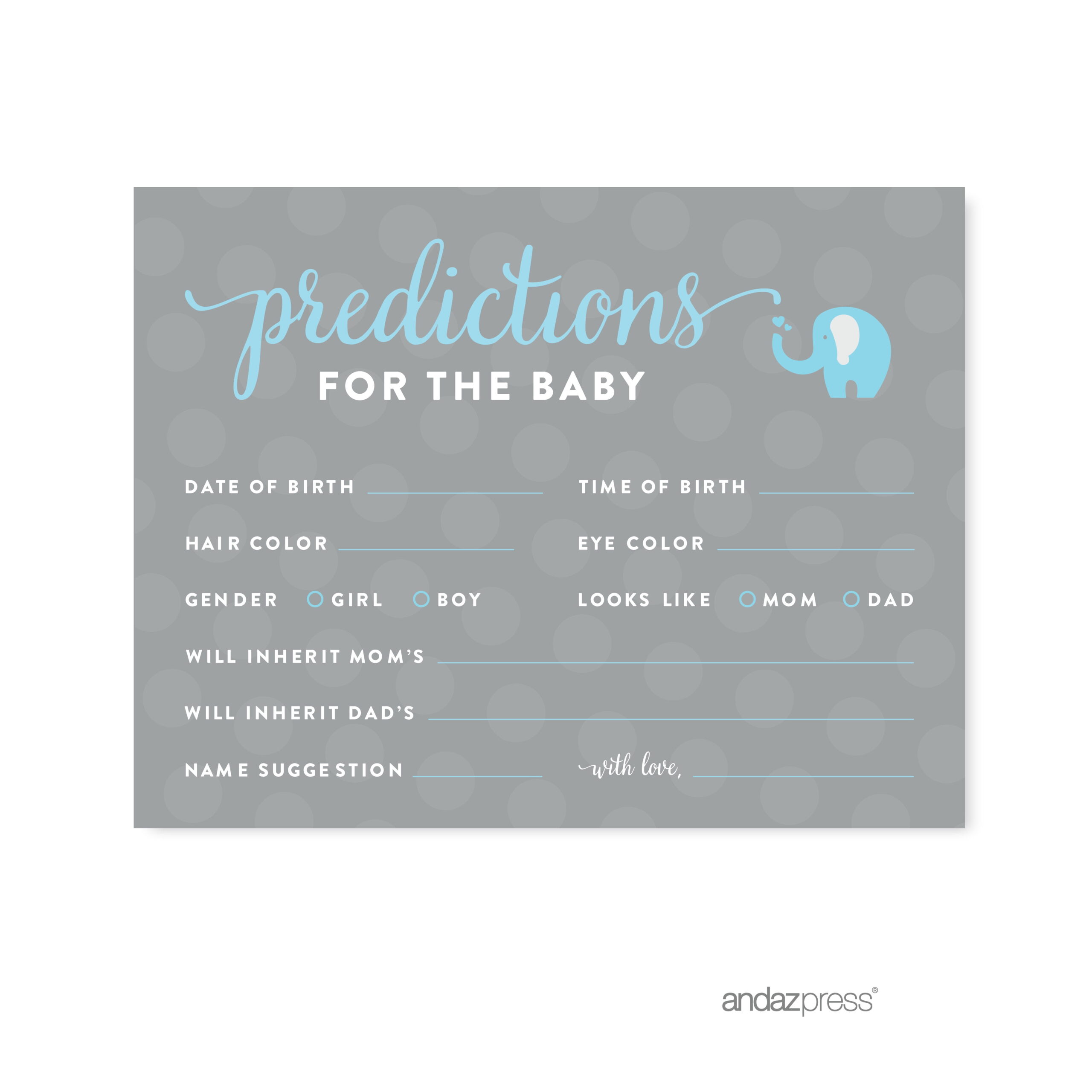 Predictions For Baby Gray Boy Elephant Baby Shower Games , 20-Pack