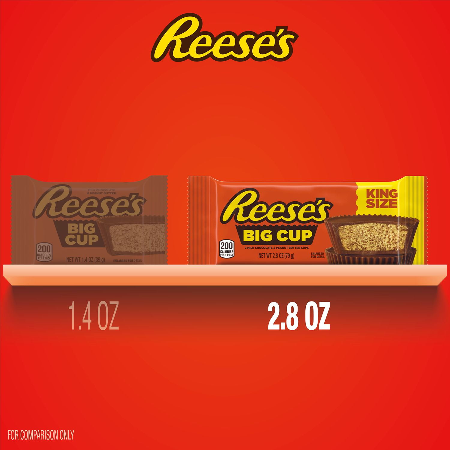 - Contains one (1) 2.8-ounce king-size pack of REESE’S Big Cup Milk Chocolate Peanut Butter Cups Candy