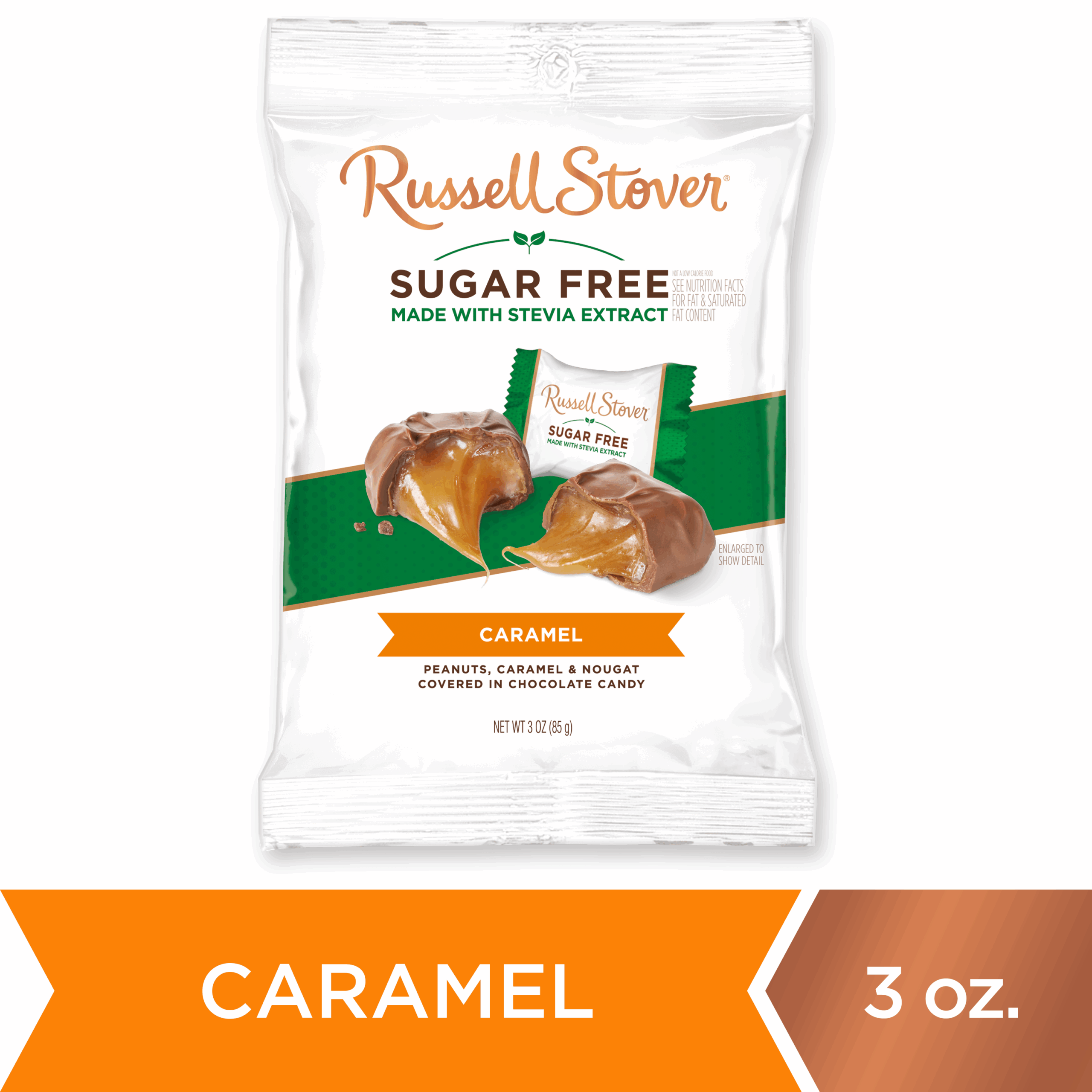 Russell Stover Sugar Free Caramel Chocolates with Stevia, 3 oz