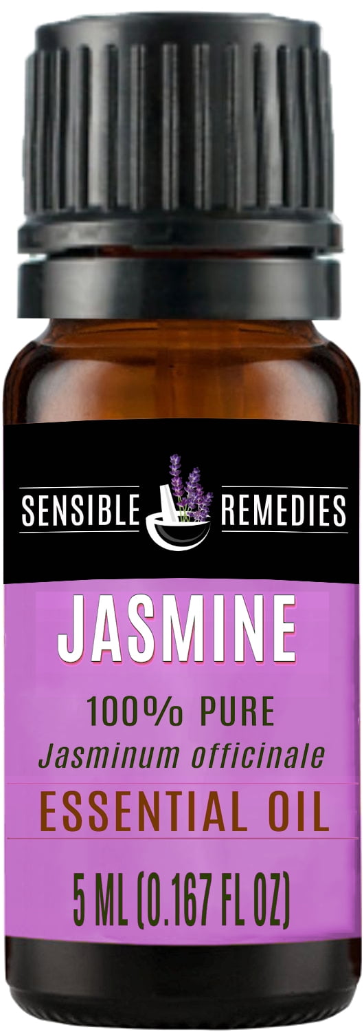 100% Pure, undiluted, therapeutic grade Jasmine Essential Oil in a 5 mL amber glass bottle with a euro dropper cap. Steam distilled from Jasmine flower petals, this high quality essential oil will work wonderfully for all of your aromatherapy needs.Oil Name: Jasmine; Botanical Name: Jasminum officinale; Color: Clear with a yellowish hue; Method of extraction: Steam Distilled; Consistency: Thin; Aroma Strength: Medium; Aroma description: Rich, warm, and floral scent.; For external use only; Bottle contains 5 mL (0.167 fl oz) of Sensible Remedies essential oil