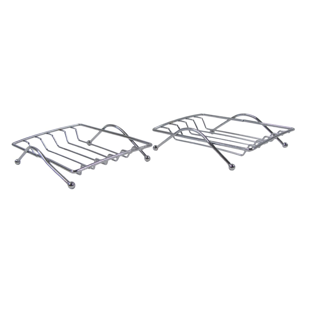 Add some modern decor to your bathroom or kitchen sink with this metal wire soap bar dish. Made from high-quality, durable metal, this set features two stainless-steel soap bar dishes that give your home a contemporary look. Perfect for your bathroom decor, this soap dish doubles as a shower caddy to hold your sponge, pouf, or even a small bottle of shampoo or body wash. The tray’s open grate design allows for easy water drainage so you can prolong your soap’s life and is the perfect for any size bathroom or kitchen sink. Get one of these soap holders for yourself and give one as a housewarming gift for friends, family, or new neighbors. Stainless-steel soap dish measures approximately 4 3/4" long, 3 1/2" wide, and 1" tall. As with all our products, this rustic decor ships brand new with our 100% customer satisfaction guarantee.