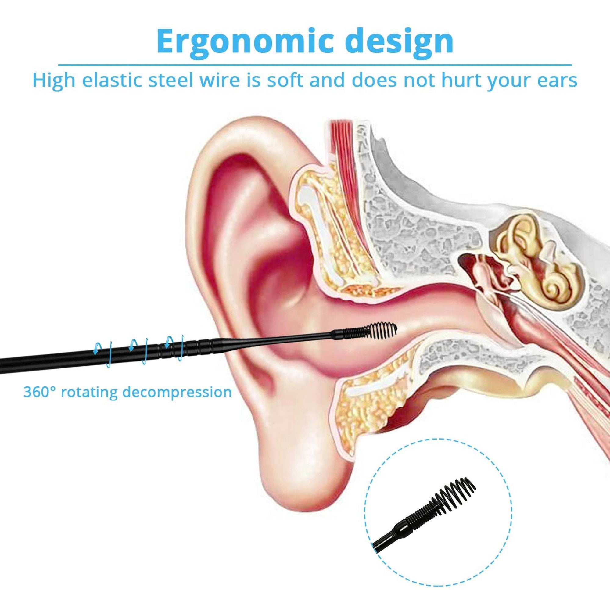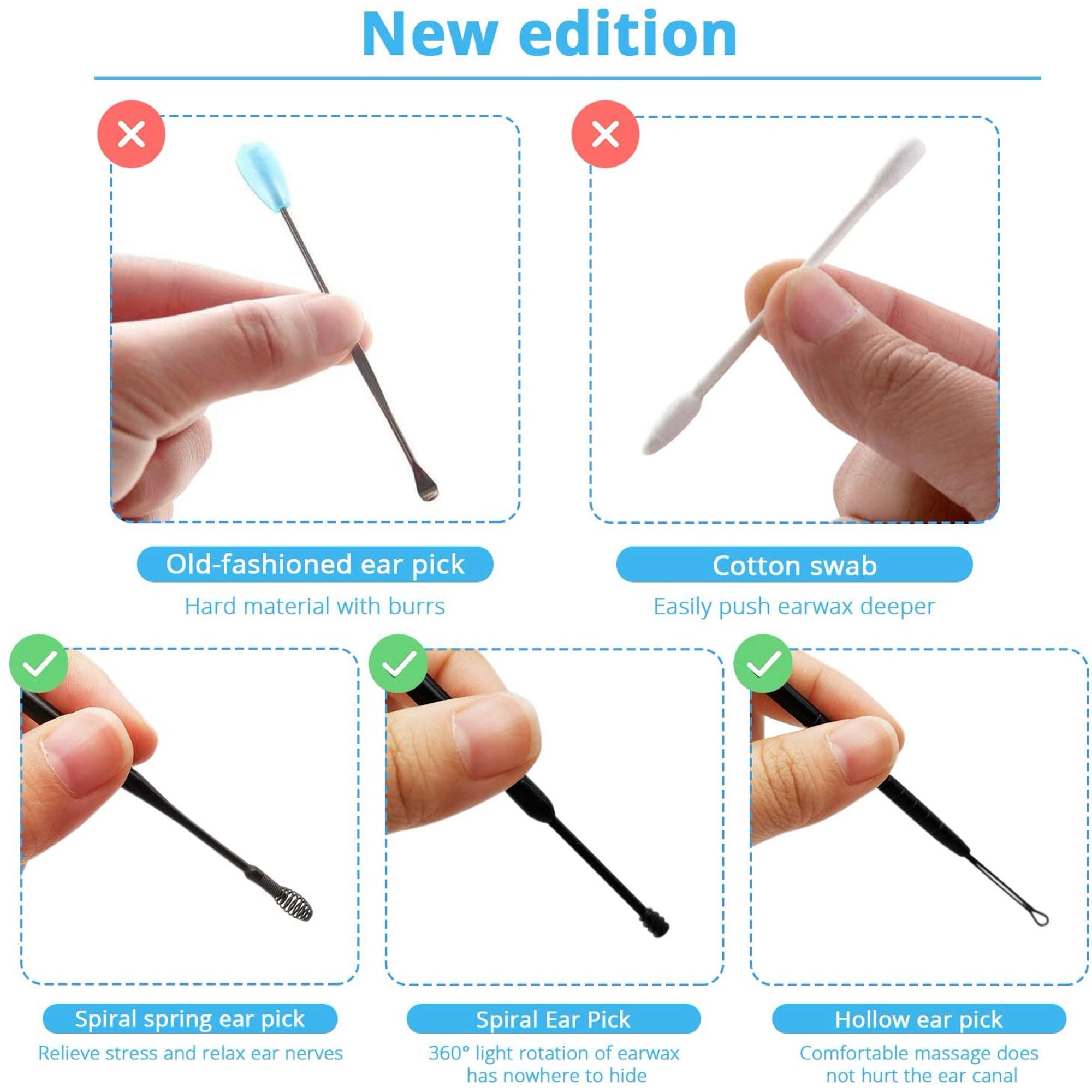 【Ergonomic Design】This Ear Wax Removal Tool Cleaner Kit include Traditonal Ear Pick, Spiral Ear Pick, Spring Ear Pick and Billeau Ear Loop and Cleaning Brush, very considerable for use