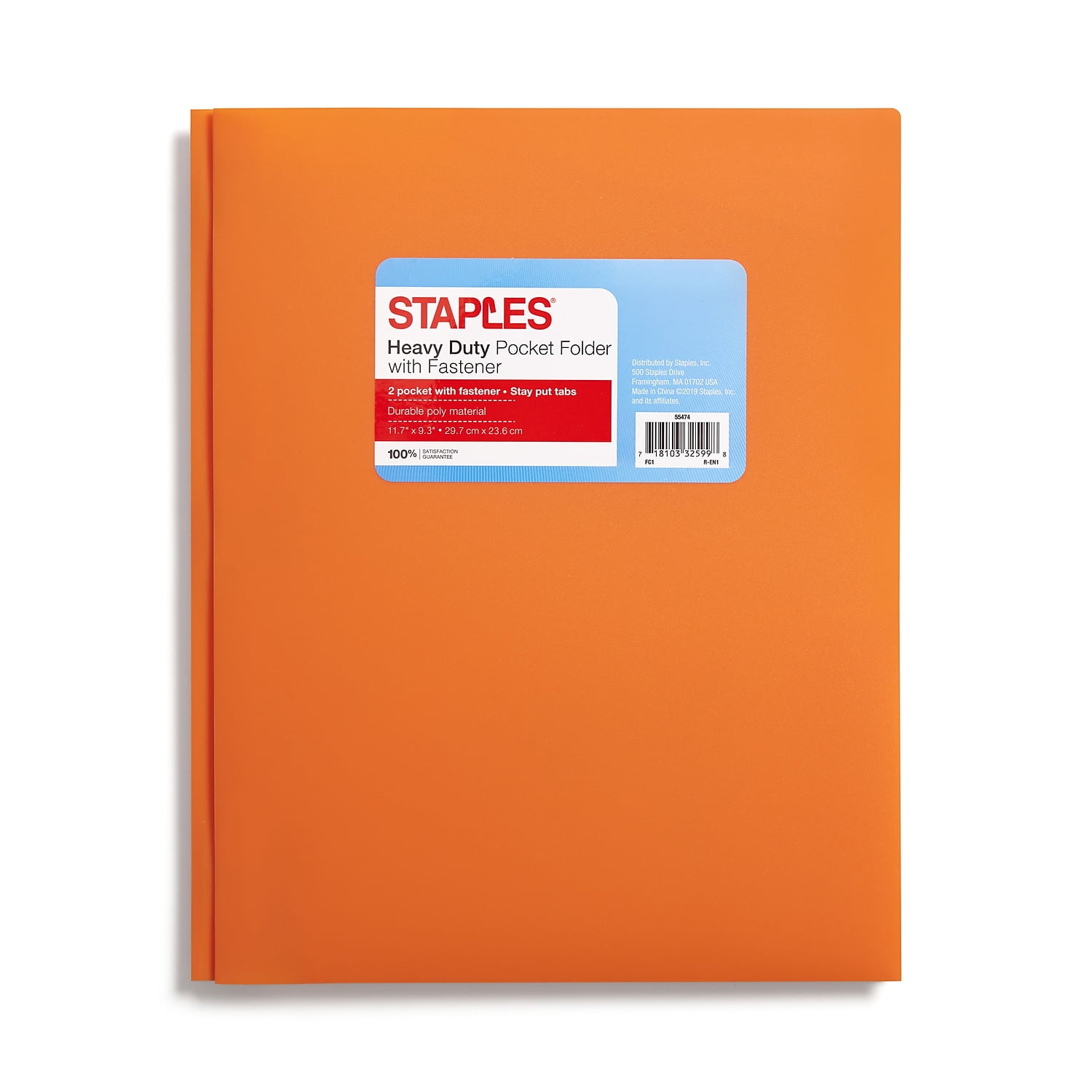 Staples 2-Pocket Portfolio with Fastener Orange 55474